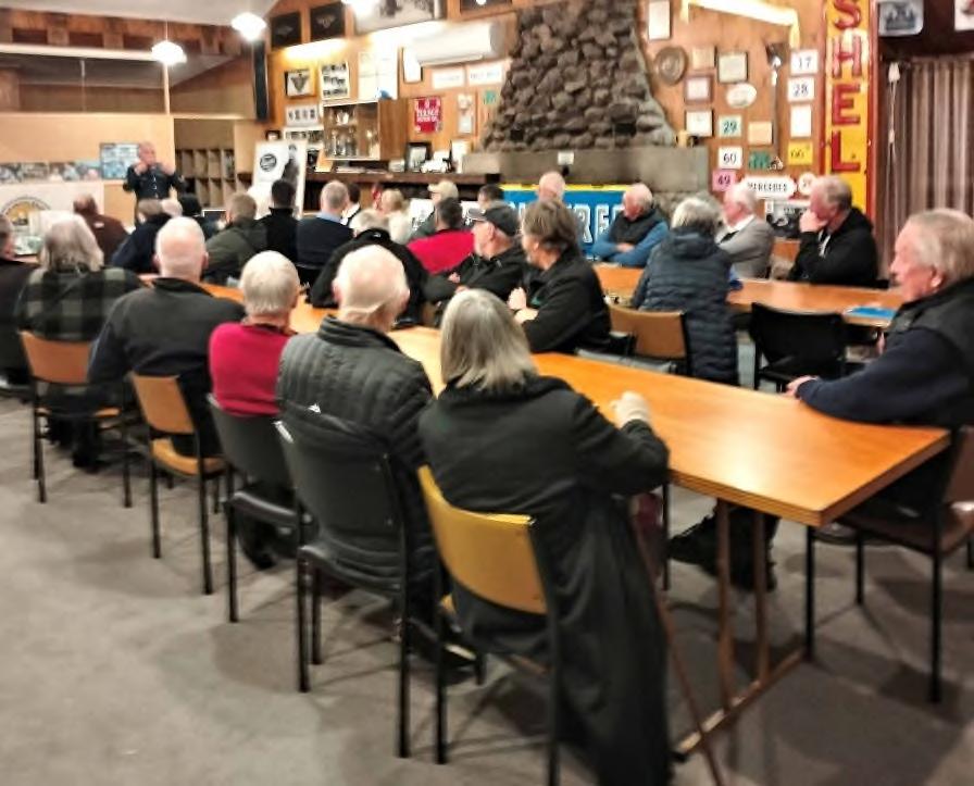 Julyclubnightsawagoodturnoutwiththirty-fourbravingthecoldtocomealongandhear Robbo(Phil)Robertson'spresentationonhis48-yearcareerintheNZAirForce(inuniform, andasanAirForcecivilian).