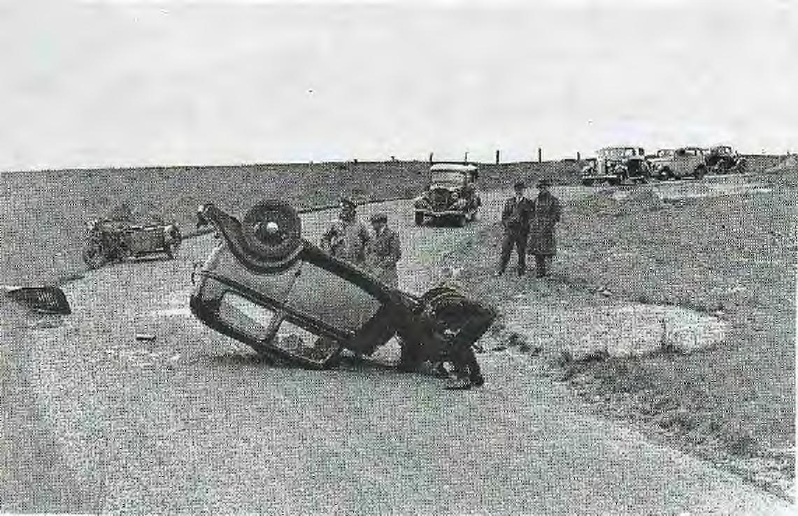 Terry-LeeChandlerofLainesburg,Mich.,missedacurveandwreckedhis1947Chevroletstreetrod onJune26th 1985.ChandlerwasoutofhospitalanddoingwellbyAugust1985. PictureshowsanEnglish‘breakdownpatrol’attendingtoanaccidentinthe1960s. Theupside-downcarisanEnglishFord.