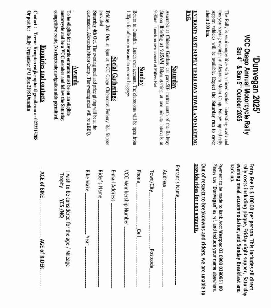 correspondence to Rally Organiser: Ewen Duthie phone: 0278388324