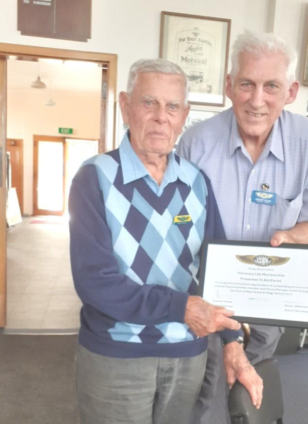 Manager with a certificate of appreciation for all the work he has done for the branch over the many years he has been involved. Bill managed the bar and kitchen alongside Alistair Drummond during all the events we have had and some. Having also sourced much of the memorabilia that lines the walls of our main hall, and ensuring that the restoration photos got hung up each year. Until recently he was also part of the Parts Department team. Which often meant he was called out to open up the Parts for someone who was looking for that all important part to finish of a repair. Congratulations Bill