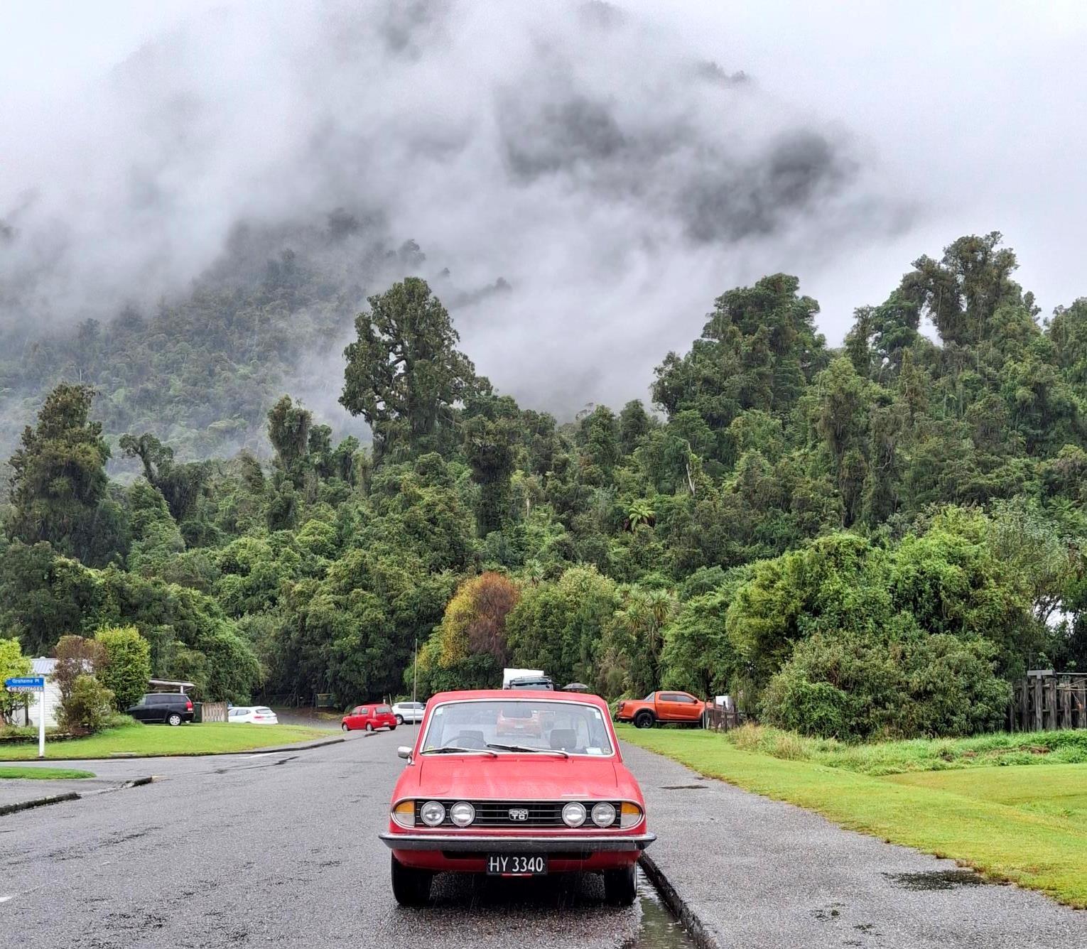 Three cars headed to the West Coast for the annual Scenicland Rally. Bruce Marshall and Steve Randle 1975 Mark 2 Ford Escort, Wayne Calderwood, Terry Williams and Sylvia McGibbon in 1965 Hillman Super Minx, David and Jennifer Sycamore 1976 Triumph 2500TC. All three cars travelled up the West Coast staying the first night in Haast completing the trip to Greymouth on Friday. From Wanaka the number of vehicles on the highway, rental cars, camper vans were quite incredible with minimal or no parking spaces available in the popular stopping areas.