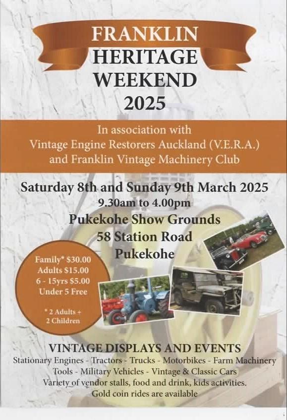 A VISIT TO ROY SHARMAN’S COLLECTION IN WAIUKU. MEET AT THE MATTEBLACK CAFÉ (formerly the Fire Pot Café) at Gordonton at 10am. We will be leaving at 10:30am. Bring your lunch and drinks to enjoy at Roy’s Place. Contact Graham Pate 0212801586 for further information.