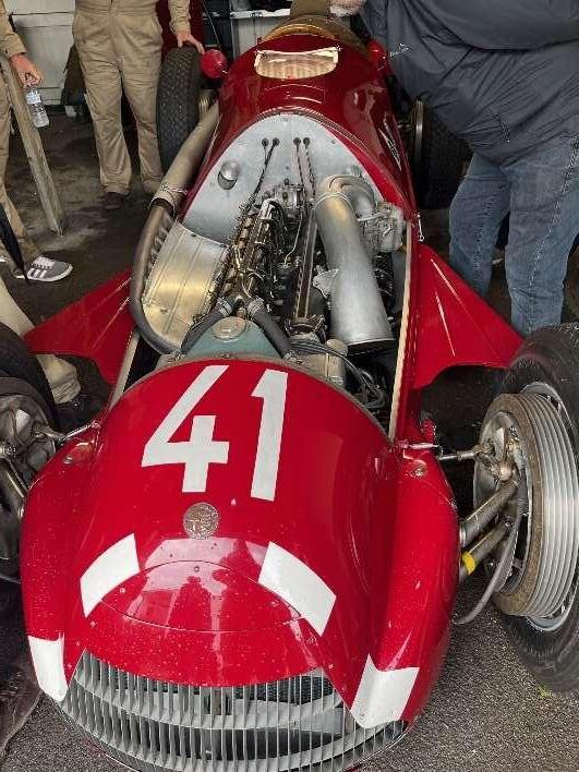 The crowds weren’t deterred by the weather and so we were amongst the throng at Madgwick watching the Goodwood trophy for fledgling F1 cars both post and pre-war. Maserati, Alfa’s Riley, Fraser Nash and a bunch of ERA’s and a few others made up the field. Despite the wet track it was all on with close and fearless racing. An ERA won out in the end closely followed by the Fraser Nash “Fane” Monoposto and the Maserati 8C closed out the podium.