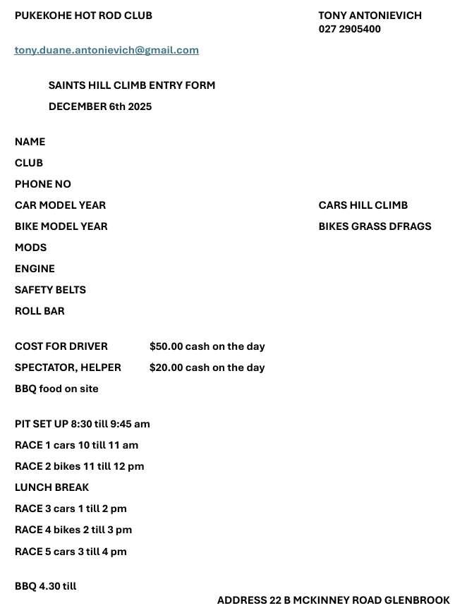 The address above is of the event! Fill in the details and e-mail it to Tony whose details are at the top of the page.
