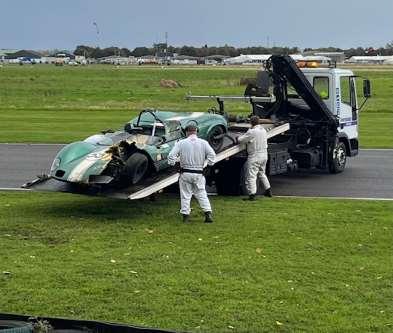 The highlight of the whole event for me was the RAC TT. Cobras, E-Types, TVR along with a few others for an hour-long tussle. The race started with a crash and was followed by another incident and a red flag. When it all got going again the rain came! Two E-Types battled on in the rain for the first two places after a superb display.