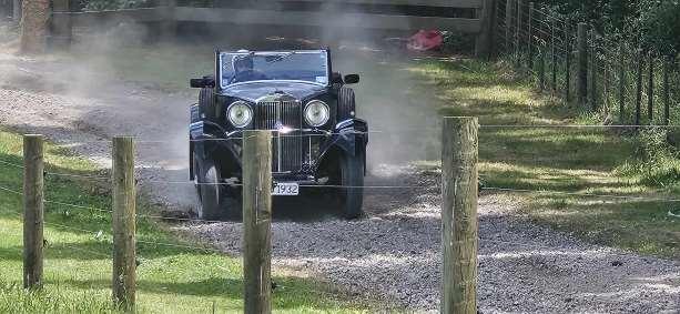 sideways Sunbeam takes up a lot of room, so I lost most of my speed and the engine dropped off the torque curve for about 30 m. Changing to first was not an option because with no synchro or clutch stop, I would have been nearly stationary by the time second was engaged. After the gradient flattened a bit, I was off and drifted through a set of S bends then reached the main straight where I was hitting 45 mph, still in second, before braking heavily for a nearly 90⁰ left turn. This was followed by a short straight to the finish. I got in eight runs which was pretty satisfying.