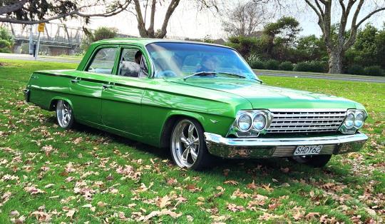 Above right: 1962 Chevrolet Belair with Karl and Rebecca Brown, Whanganui.