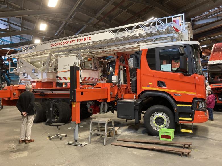 Not surprisingly, a new fully-equipped fire engine can cost well over a million dollars, and we saw 36 appliances of various types in the assembly shops during our visit, a big proportion destined for export to Australia. Some incorporated high-reach ladder systems which come from a specialist manufacturer in Switzerland. Others were "heavy pumpers", capable of pumping 4,000 litres/minute, using specialised pumps made in America powered by a dedicated Deutz engine from Germany.