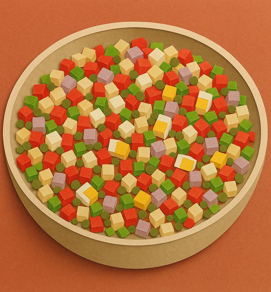 Con las sobras de las verduras troceadas, sin huevo aceitunas ni alcaparras prepara una olla y en lugar de aliñar, pon a hervir.