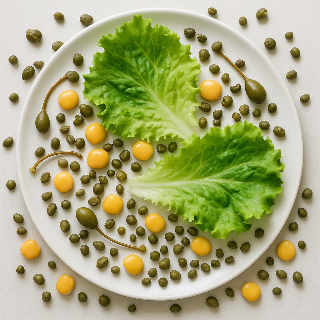 9. Ensalada Desnuda – Lechuga triste con aceitunas y altramuces.