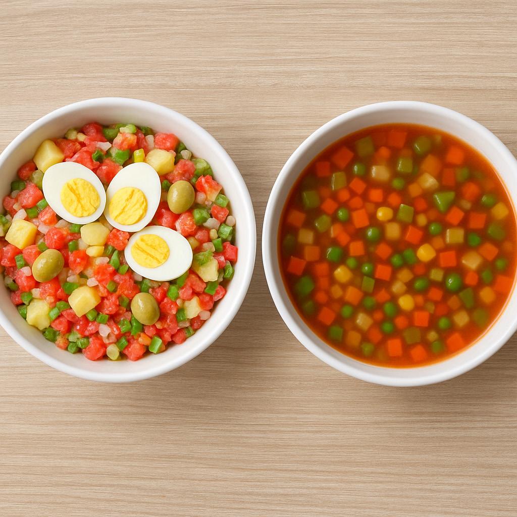 8. Dupla Galáctica – Ensalada picada al átomo + su versión sopa reciclada.