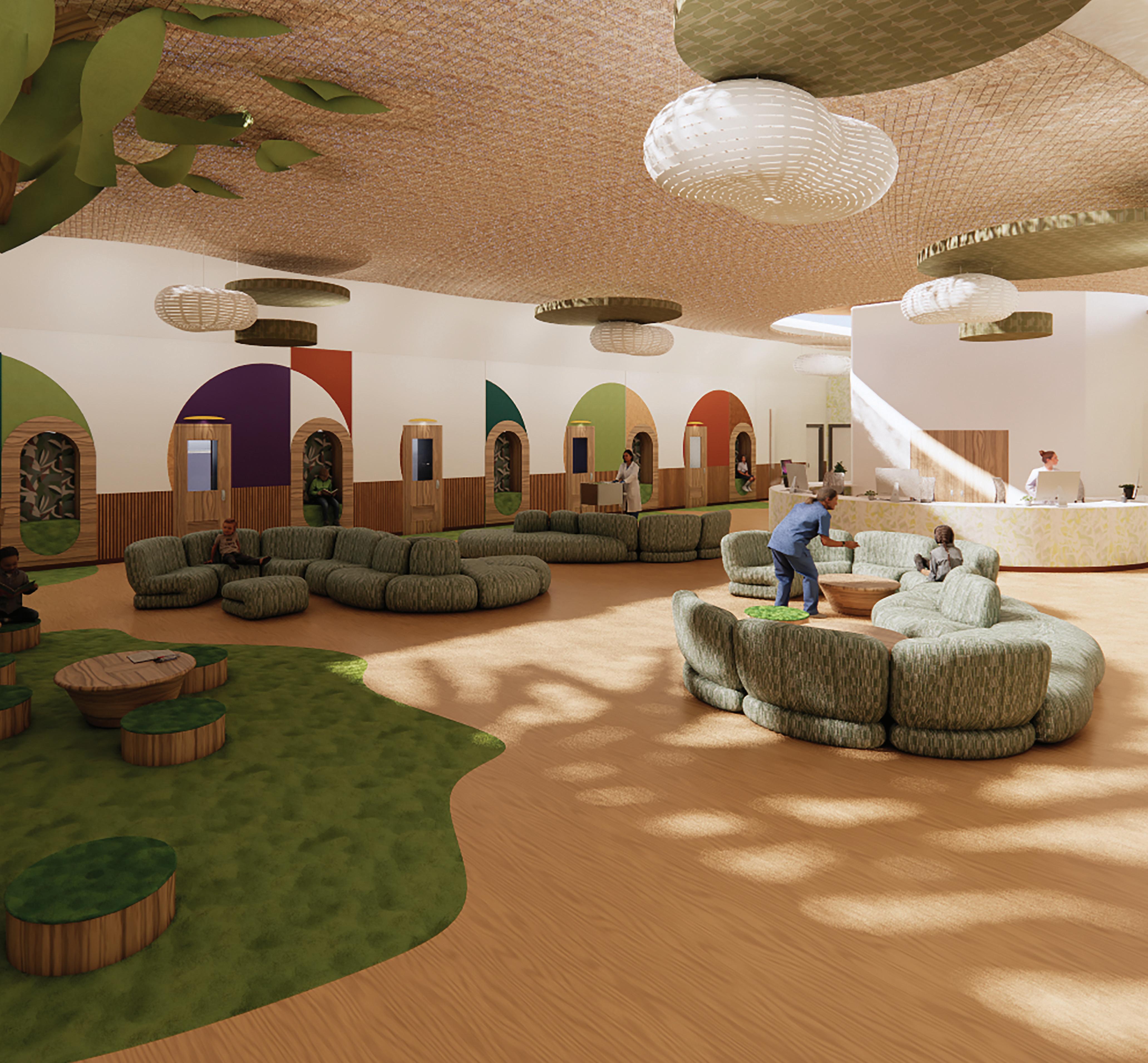 To set a precedent for the inpatient facility , the reception is created with sensory engagement in mind, soothing waiting adult and child users. to juxtapose typically sterile environments within behavioral health