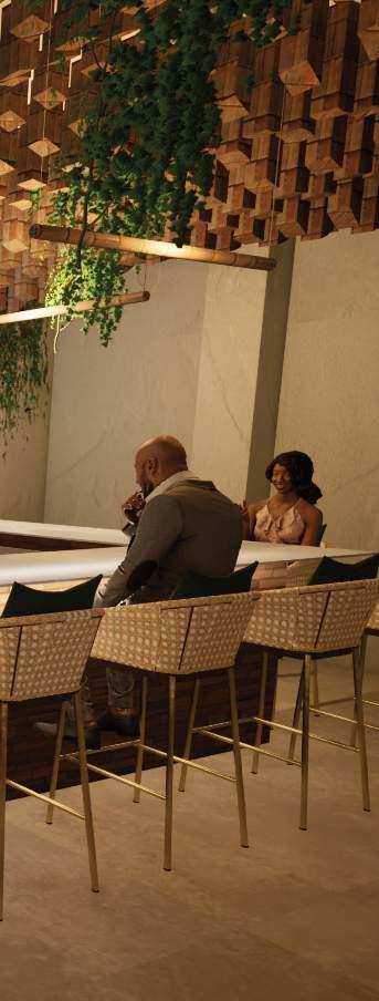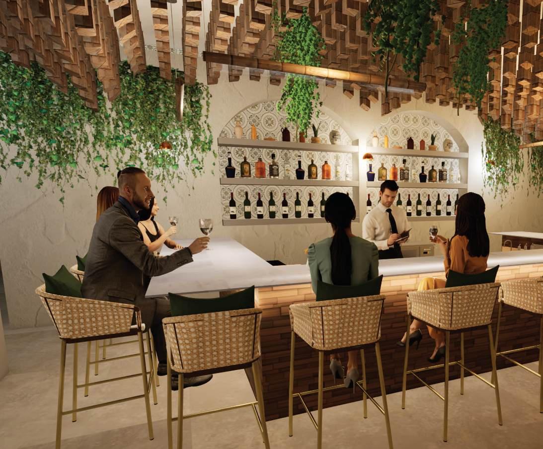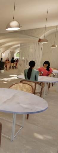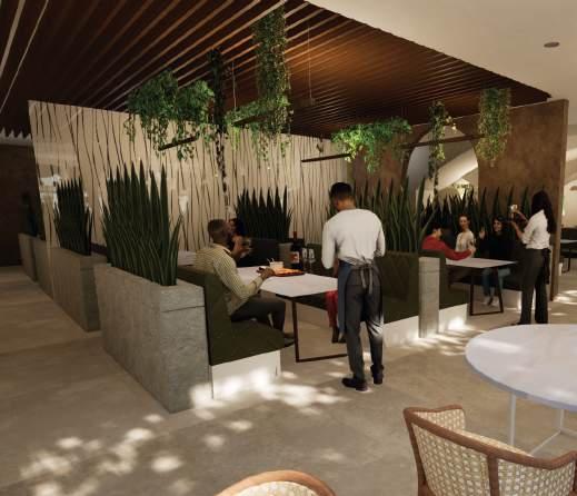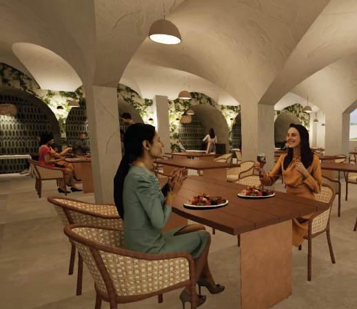 Implementation of design tools in the resturaunt are envisioned through a cultural lense, biophilia is used in high traffic areas, foliage featured designs, in tandem with archways that encompass biomorphic forms.