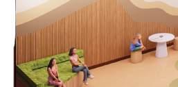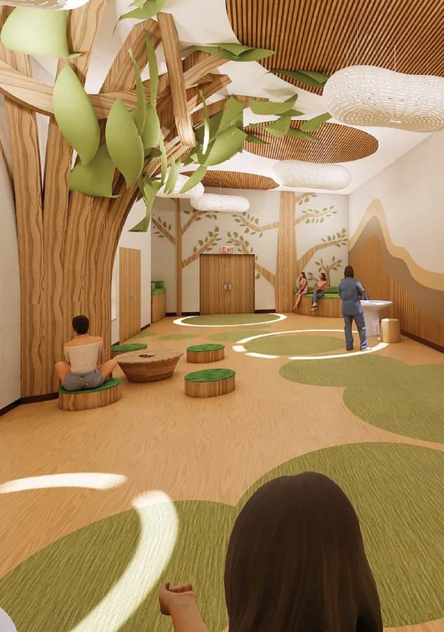 To set a precedent for the inpatient facility , the reception is created with sensory engagement in mind, soothing waiting adult and child users to juxtapose typically sterile environments within behavioral health