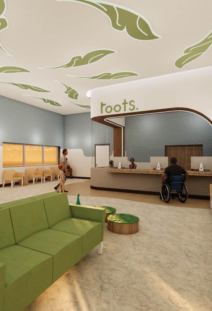 curvilinear elements draws users in as they enter the clinic - intake might not always be consensual