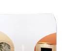 Sweeping stone material is carried throughout the elevation, accented by warmer toned furniture & lighting