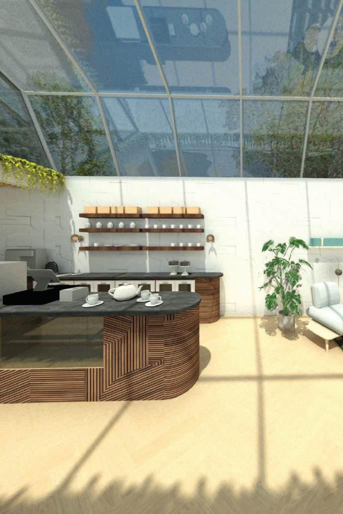 Herb & Harmony innovatively seeks relief in an unforgiving world, drawing from Japanese tea gardens and biophilic principles to create a sustainable environment within the cafe’s boundaries. The built environment acts as a haven, addressing daily needs for restoration in its connection to the outdoors and use of thoughtful materials (Kellert, S. and Calabrese, E. 2015).