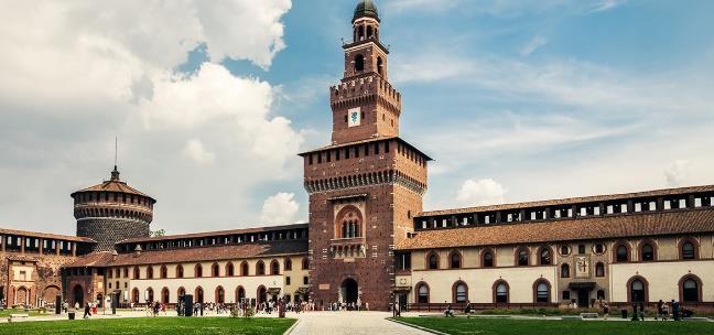 După Duomo, Castello Sforzesco este principalul obiectiv turistic din Milano datorită celor 12 mini-muzee și a diverselor obiecte ce datează din paleolitic până în anii 1950. Castelul a fost reședința familiei de nobili Visconti din anul 1368 și mai apoi readus la splendoarea inițială prin restaurări de către familia de aristocrați Sforza în anii 1450. Întreaga curte s-a adunat aici câteva decenii mai târziu când