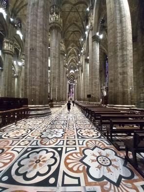 Podeaua catedralei este realizată din pietre de marmură ușoară și întunecată și a fost începută în 1584, dar finalizată numai în prima jumătate a secolului 20. În corul Duomo există o grilă pe podea sub care se află mormântul Sfântului Carlo Borromeo. Deasupra corului se află o lumină roșie care indică locul în care un cui de pe crucea lui Hristos a fost păstrat ca relicvă din 1461.