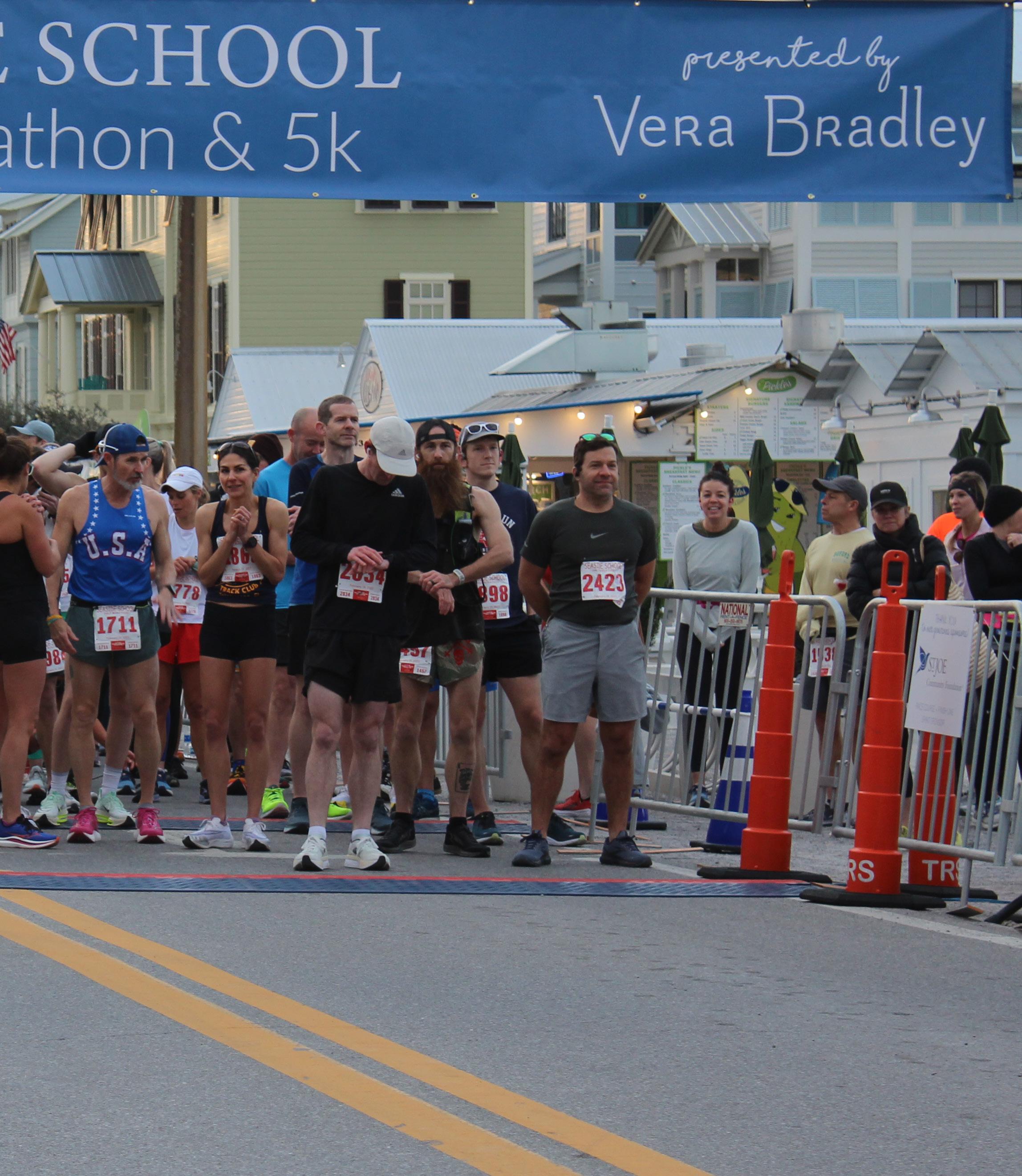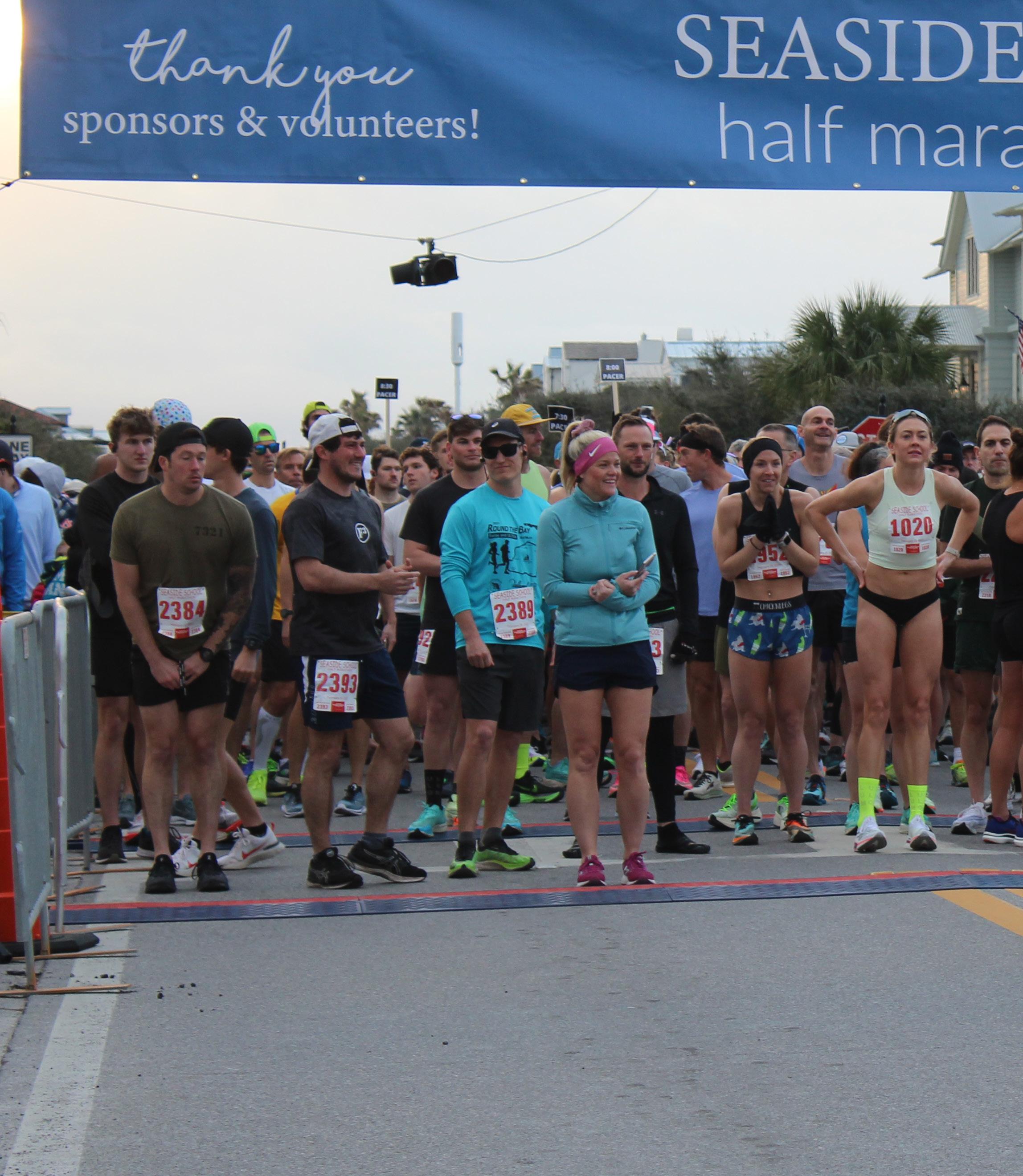 Both races, the half marathon and 5K, started in Seaside with an out-and-back run along the coastal dune lakes of Highway 30A. These combined races serve as a fundraiser support-ing the Seaside Schools Foundation, and draws runners from all over the country.