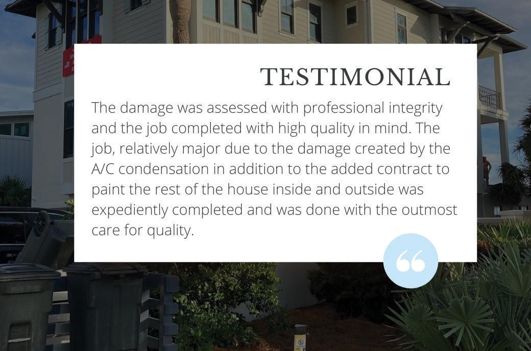 met on March 8 at our beach home to discuss our project, I was really impressed with your friendliness, professionalism, and clear interest in helping us refresh our beautiful home. I particularly appreciated your willingness to “cut to the chase” and not waste my wife’s and my time. You helped us understand a couple of tricky issues as it related to repainting our home and our stucco walls. You pointed out some areas of our house and walls that might end up being issues, but gave me confidence that you would determine the best and most economical way to address them. Which you ultimately did!