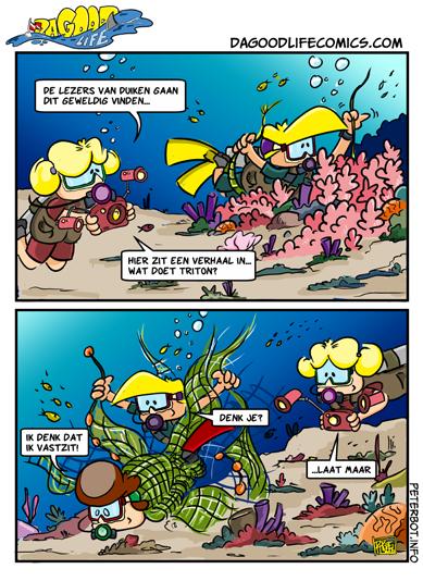 Ik ging duiken in mijn droogpak, maar hij lekte meteen bij het te water gaan. Ik dacht: “Potjandorie, weer een lek in mijn droogpak!” Omgekleed en naar huis rijdend... dacht ik opeens: “Heb ik wel beide ritsen dichtgemaakt?” Ja hoor… Ik had alleen de beschermrits gesloten, maar niet mijn droogpakrits…