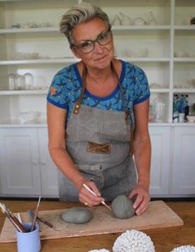 Ik werk nu aan objecten in sponsvormen, nudibranches, hersenkoralen van heel dun papierporselein, wandhangers in koraal en anemoonstructuren, schelpenhouders, krachtbeelden en gebruiksgoed met gouden zeedieren.