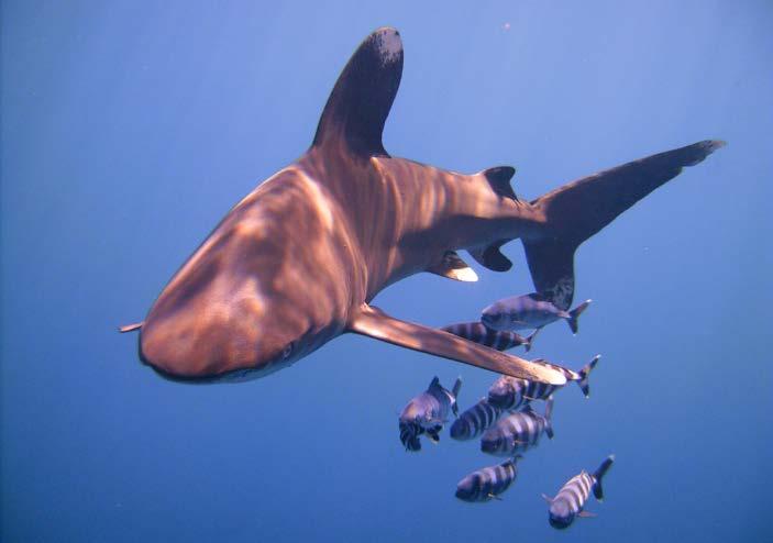 kruispunt waar drie zeeën bij elkaar komen: de Golf van Aqaba, Golf van Suez en de Rode Zee. In dit nutriëntrijke water is er aanzienlijke kans op GROOT leven. Al direct aan het begin van de duik doet Shark Reef zijn naam eer aan! Naarmate wij dichter bij de rifwand komen, neemt ook de stroming behoorlijk toe. Deze koraalwand gaat eindeloos de diepte in. Er heerst een rijkdom aan leven in optimaforma. Talrijk kleurige zachte koralen,