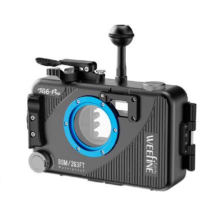Op dit onderwaterhuis voor de Olympus TG-5/TG-6/TG-7 camera’s kan je een onderwatermonitor plaatsen, zodat je je foto’s tijdens de duik al extra goed kunt beoordelen. Het huis is voorzien van een vacuümsysteem voor een extra veilig gevoel en met een maximale diepte van 80 meter. Het onderwaterhuis bevat een accu voor het vacuümsysteem, maar ook voor een extra lange gebruiksduur van de camera. Prijs: € 799. www.onderwaterhuis.nl