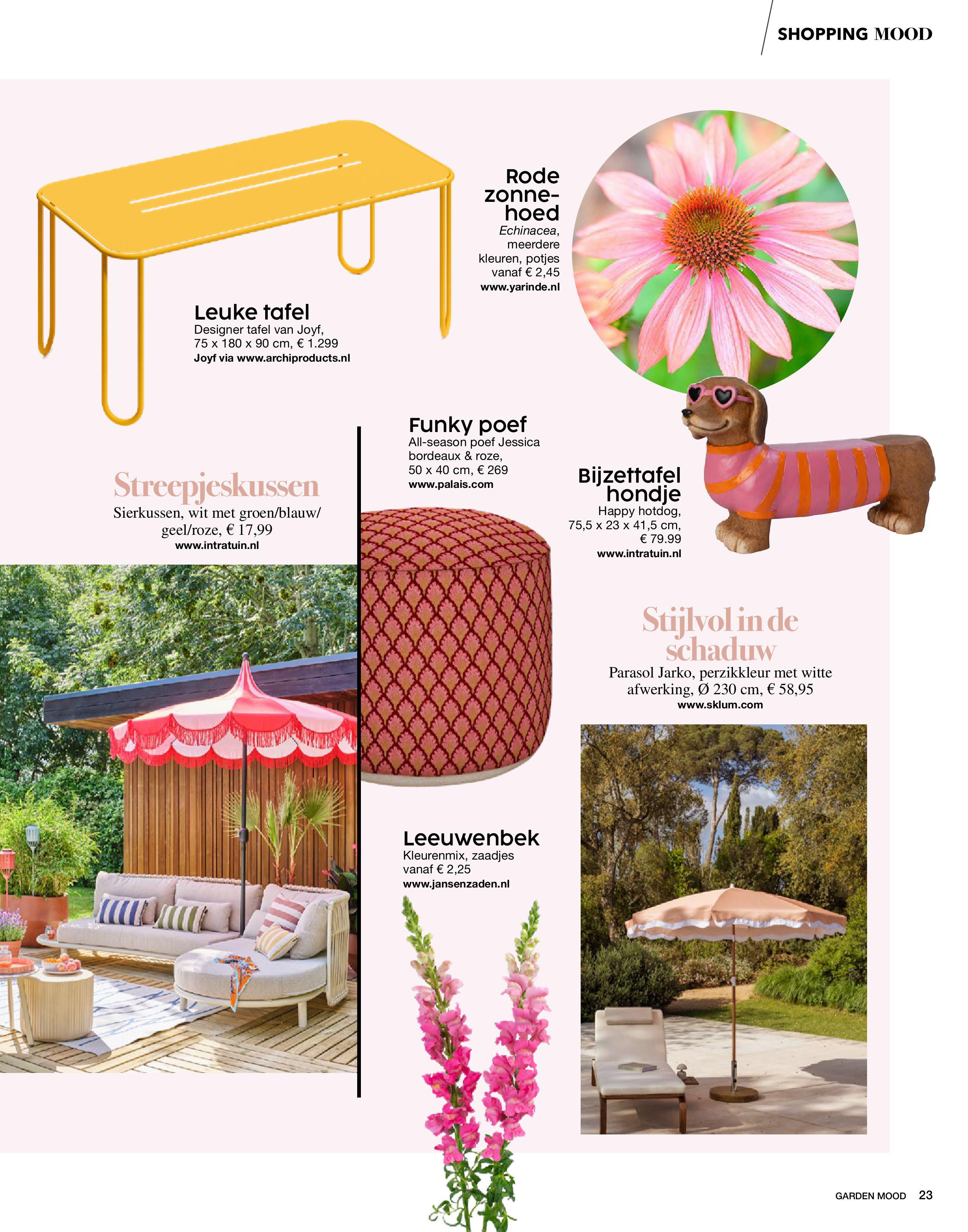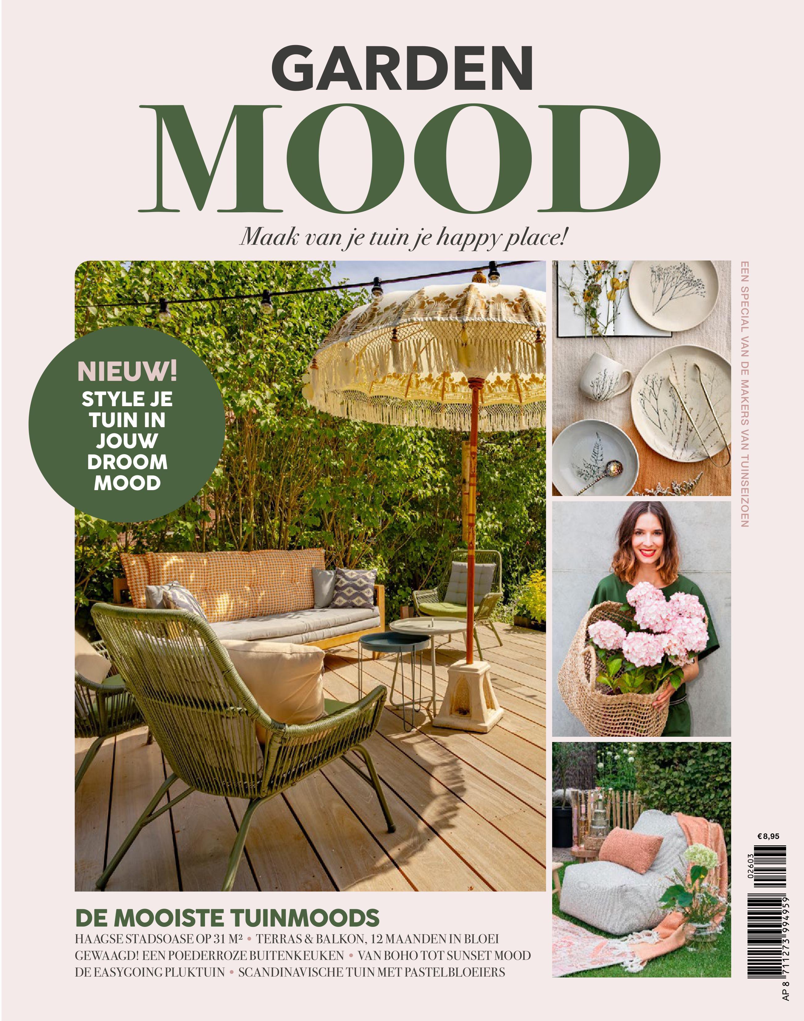 Deze special Garden Mood laat zien hoe je van je tuin een echte happy place maakt. Het magazine biedt inspiratie voor verschillende tuinstijlen, van boho tot Scandinavisch, en laat zien hoe je je terras, balkon of stadstuin sfeervol inricht. Met ideeën voor buitenkeukens, bloeiende tuinen en easygoing pluktuinen helpt dit nummer je om jouw tuin helemaal in jouw droomstijl te creëren.