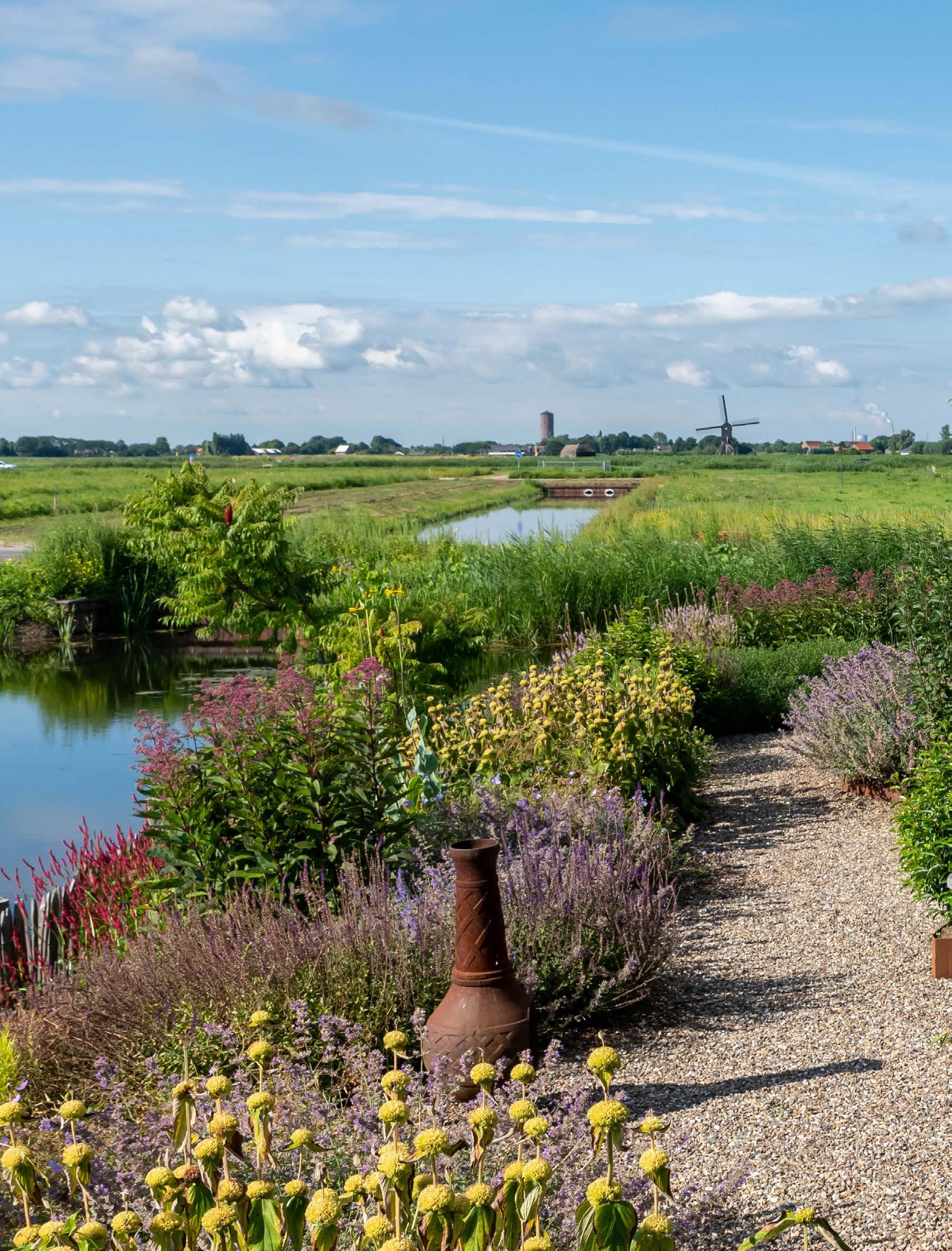 Deze nieuwbouwwoning aan de rand van Sleeuwijk heeft een prachtig uitzicht over de polder. Tuinontwerper Günther de Rooy liet het daar niet bij, hij trok de sfeer van het landschap naar het huis toe. “Ik zie het niet echt als een tuin-tuin, ik zie het meer als een verlengstuk van de polder. En alles is geënt op het uitzicht.”