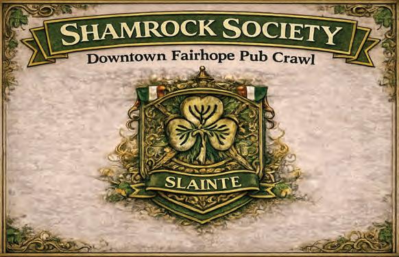The Shamrock Society hosted its inaugural Downtown Fairhope Pub Crawl, bringing members and friends together for an afternoon of camaraderie, Irish tradition, and festive celebration. The group gathered for a member only party before marching through downtown behind the sound of bagpipes, stopping at several local establishments along the way. Dressed in kilts and society shirts, participants celebrated community and friendship with the lively spirit that makes Fairhope so special.