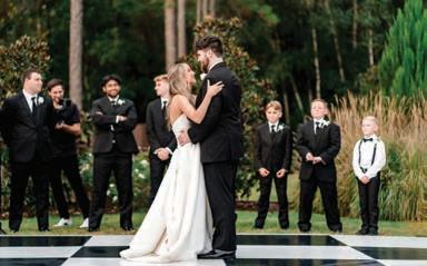 Lyons felt the same certainty. “Katie is the epitome of style and grace,” he said. “She’s strong and witty, beautiful and charming, caring and engaging—and on top of all of that, she’s the smartest person I’ve ever met. I knew she was my person immediately.” What stood out most, he added, was her ability to truly listen and respond with intention.