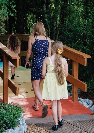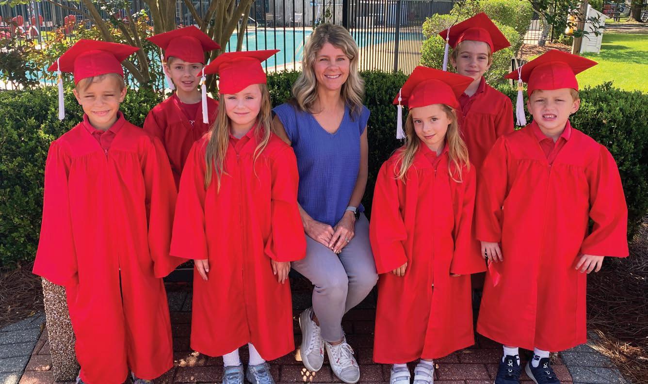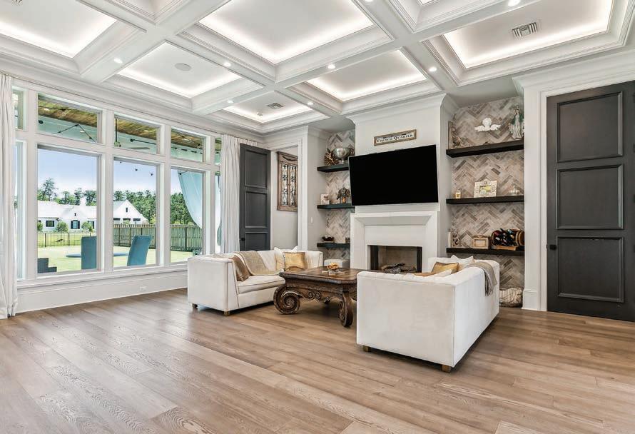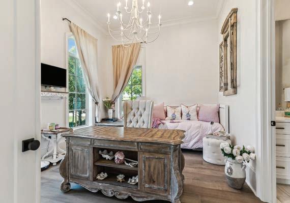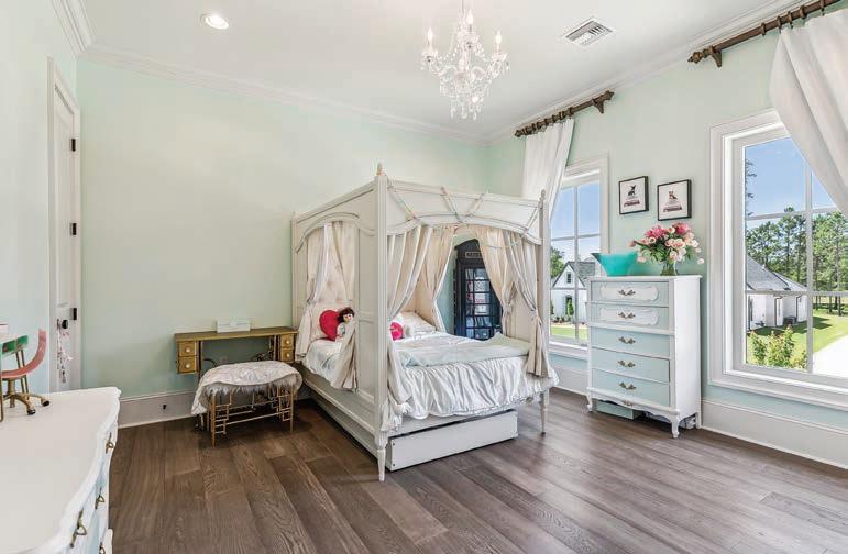 Over the last two years, the family have made the spaces theirs, from the well-appointed playrooms to Mandi’s impressive “Queen bedroom” closet. “When we first moved back to Louisiana from Evansville, Indiana, where we’d been living, we went to the Parade of Homes,” says the Chalmette native. “Walking into a Troyer Builders home was love at first sight, so when this house became available in Madisonville, we just felt that it was meant to be. We’ve only lived in this house for two years, but we definitely love sitting on the patio, watching the girls on the trampoline, and our youngest dig in the dirt and ride his four-wheeler. I love being upstairs when time stands still for a bit, doing schoolwork on the floor with the younger three of them, and my oldest allows his dad and me to hang out with him sometimes in his man cave for a little while.”