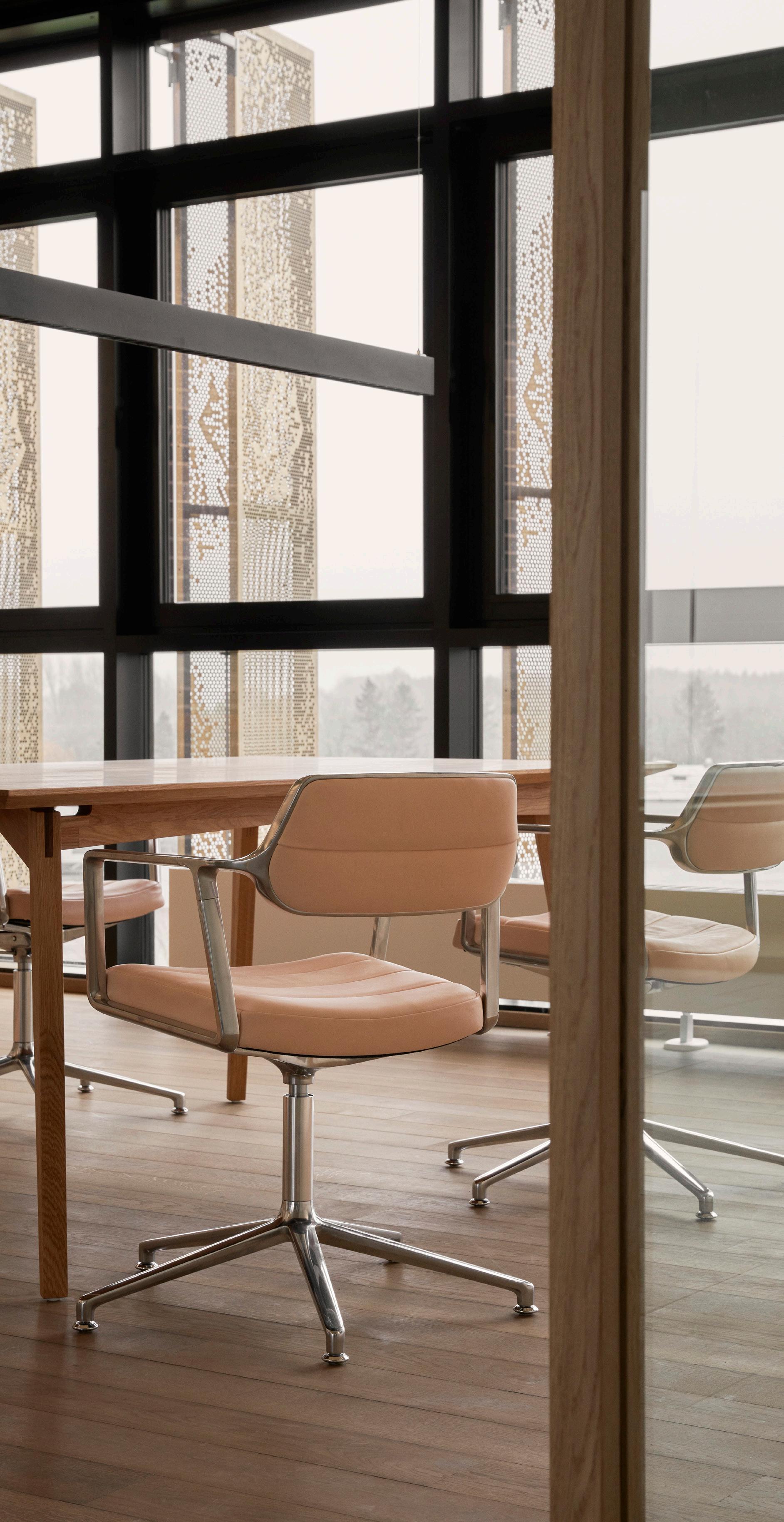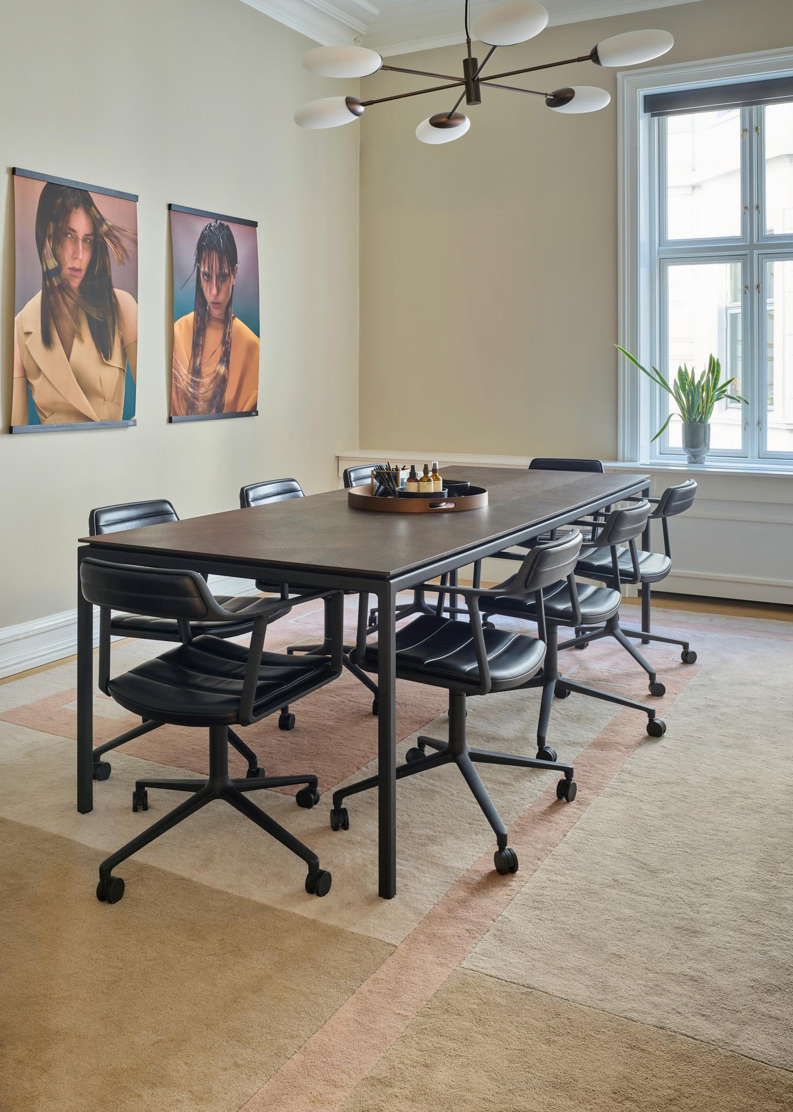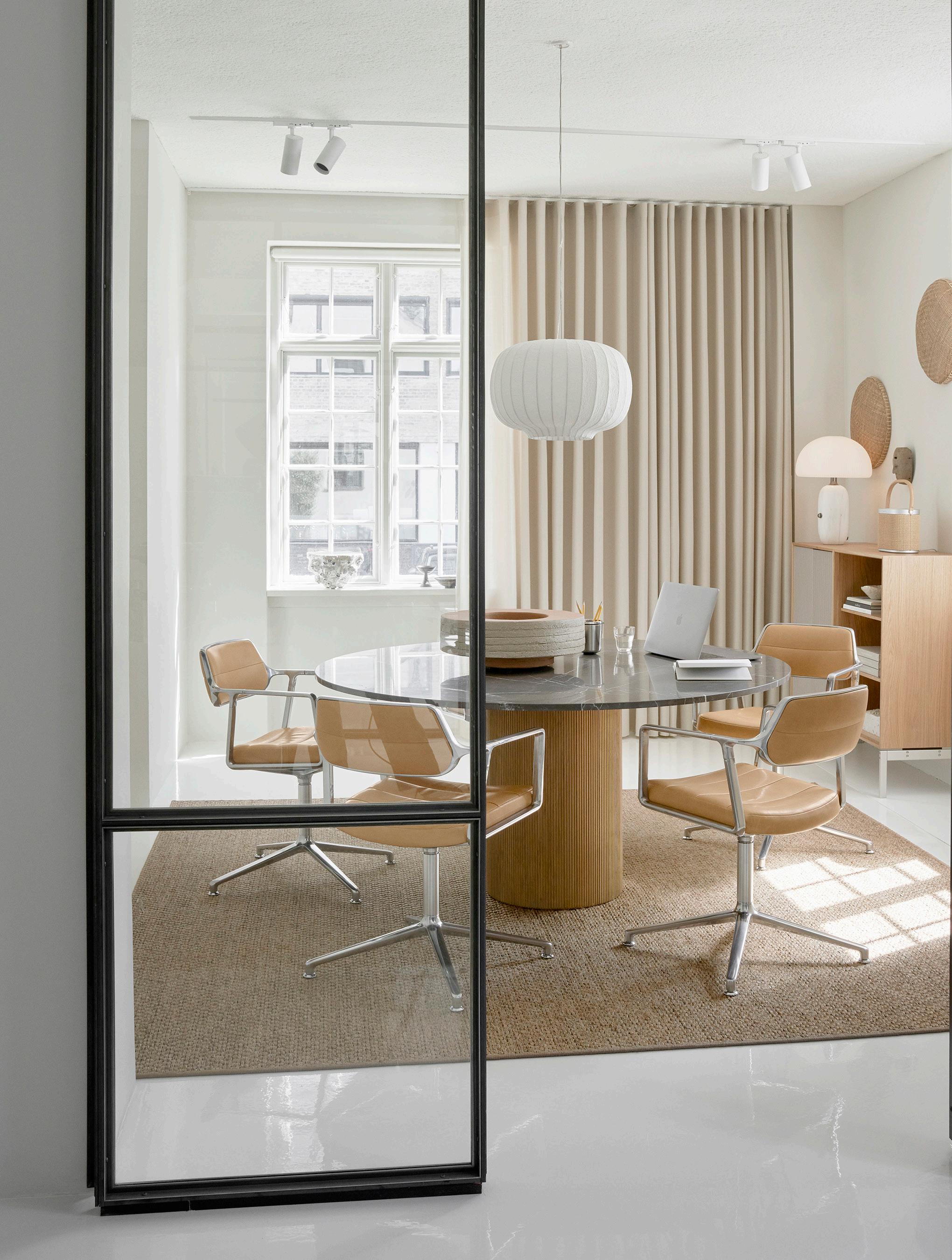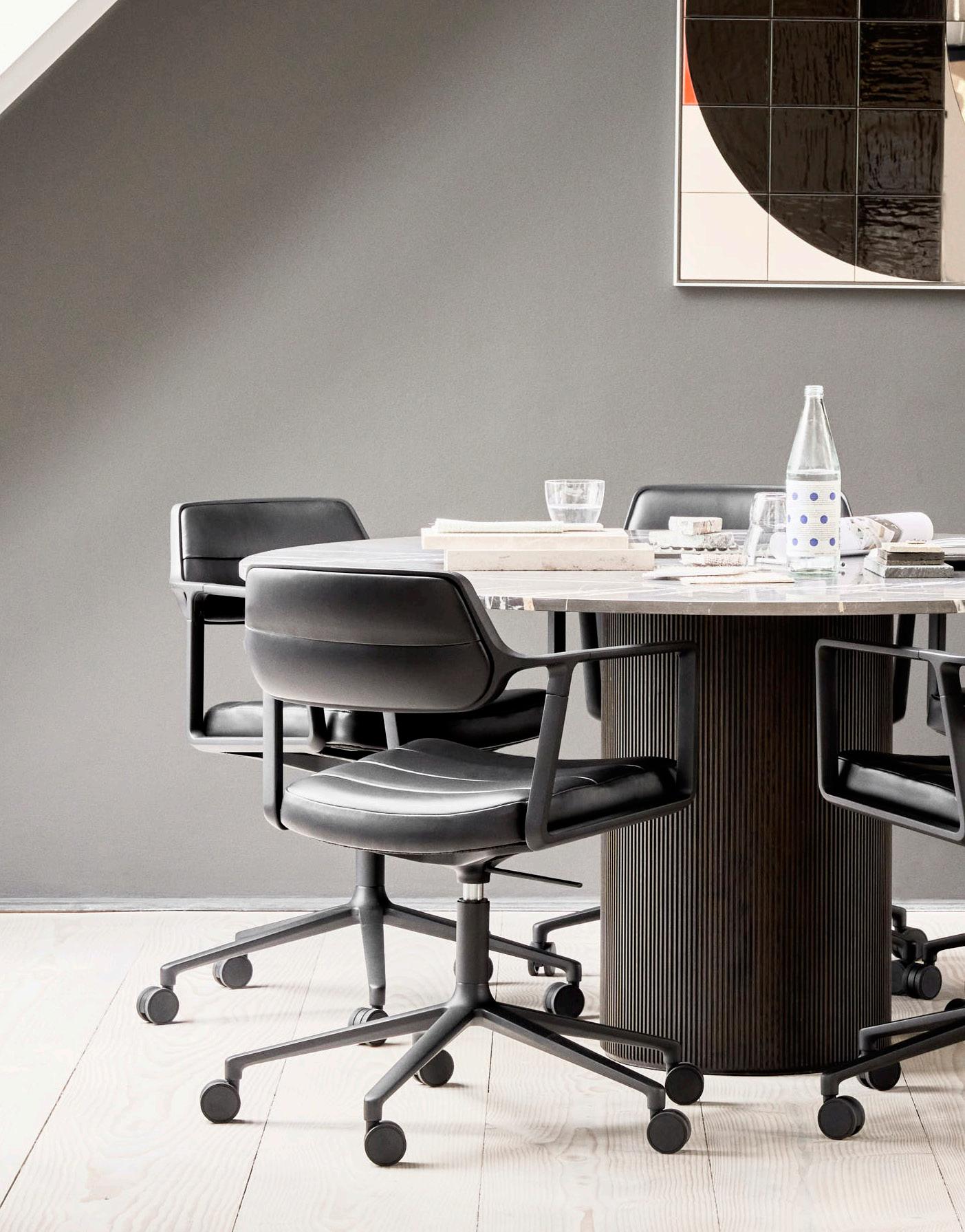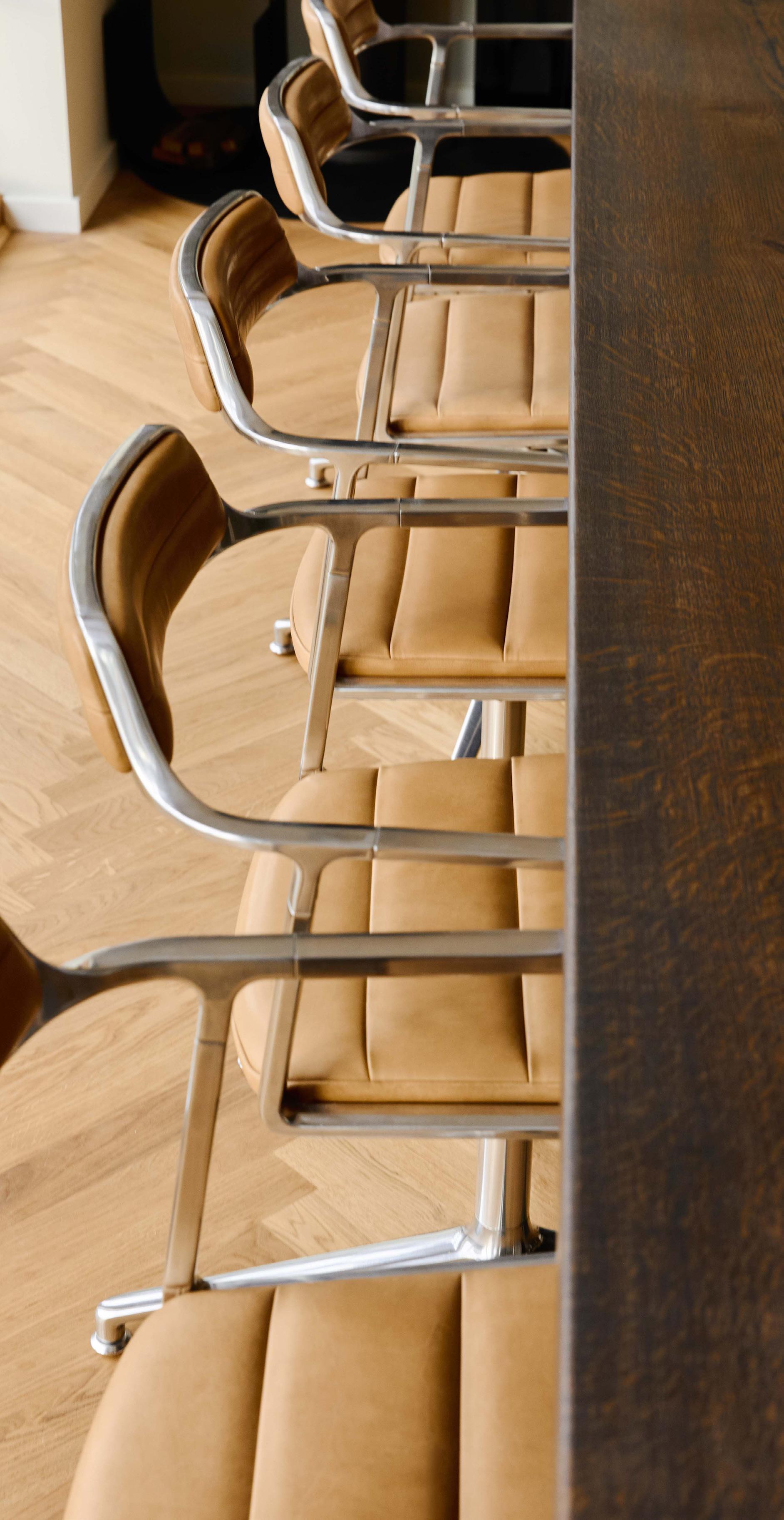 In an industrial district outside Aarhus, Aduro has furnished its headquarters’ meeting rooms with Vipp Swivel+ chairs in custom-made virgin leather.