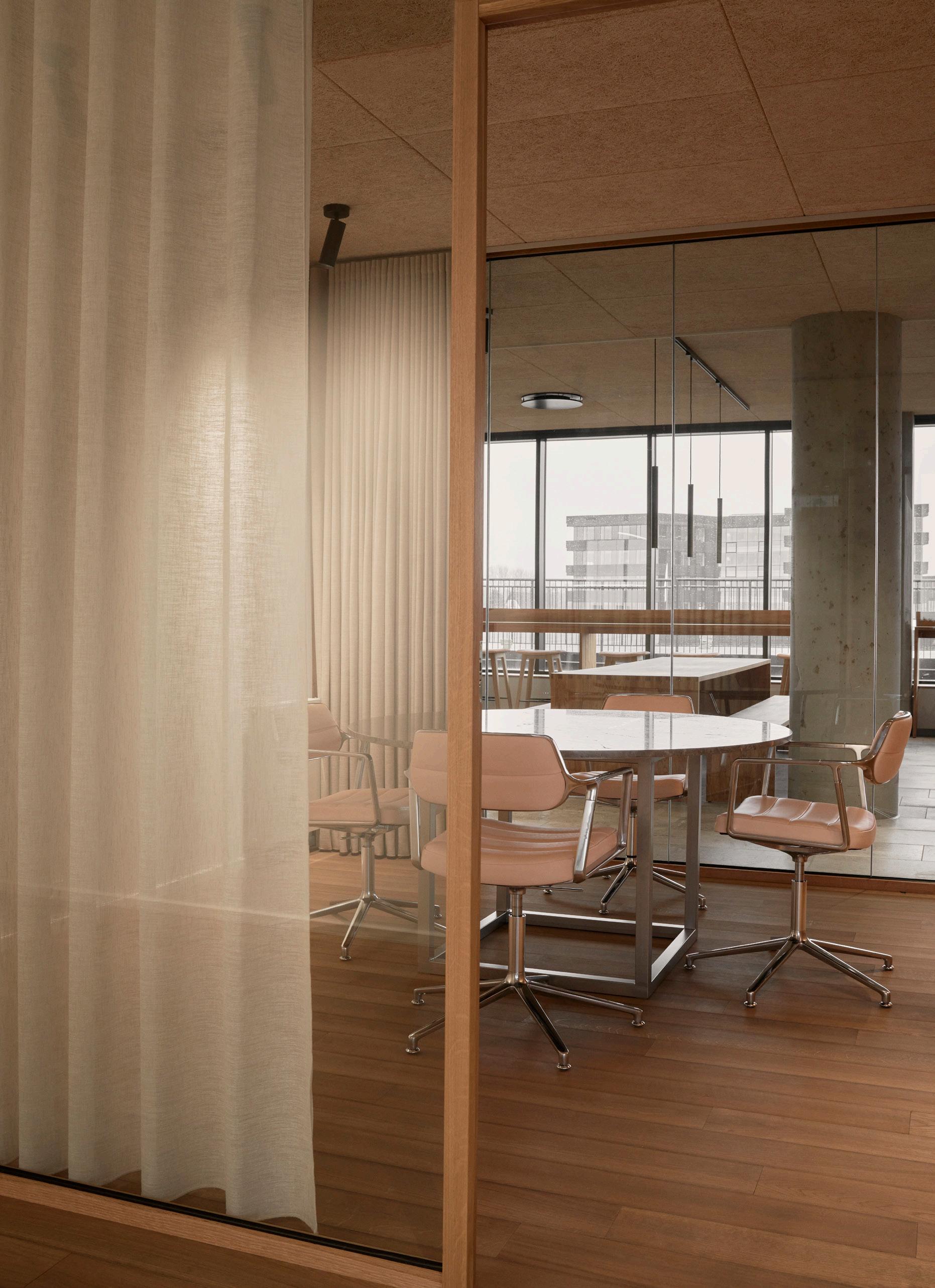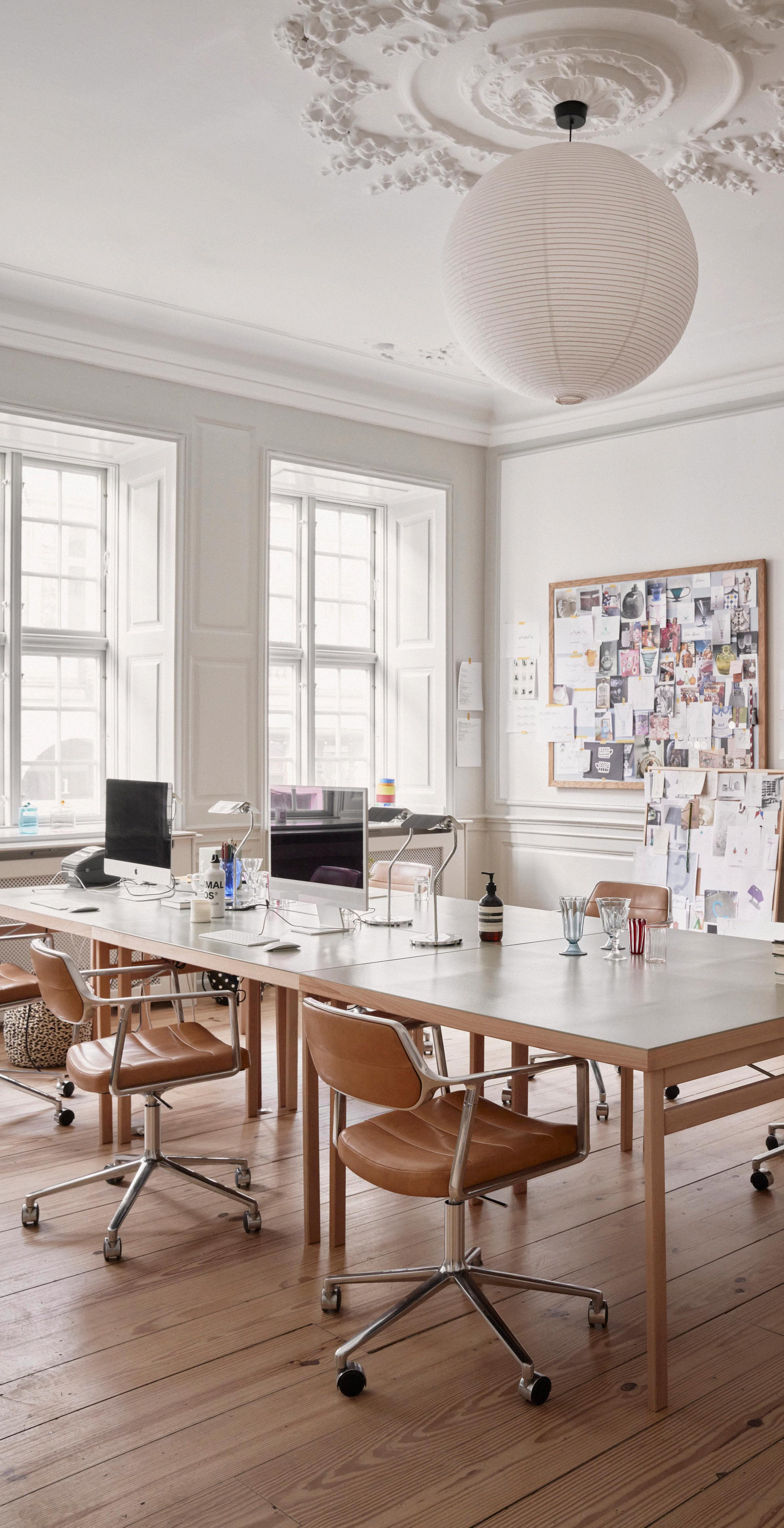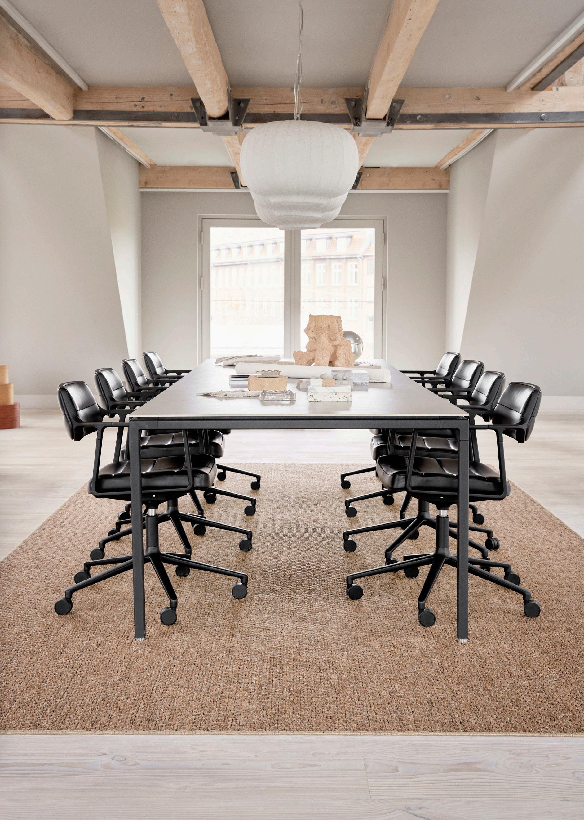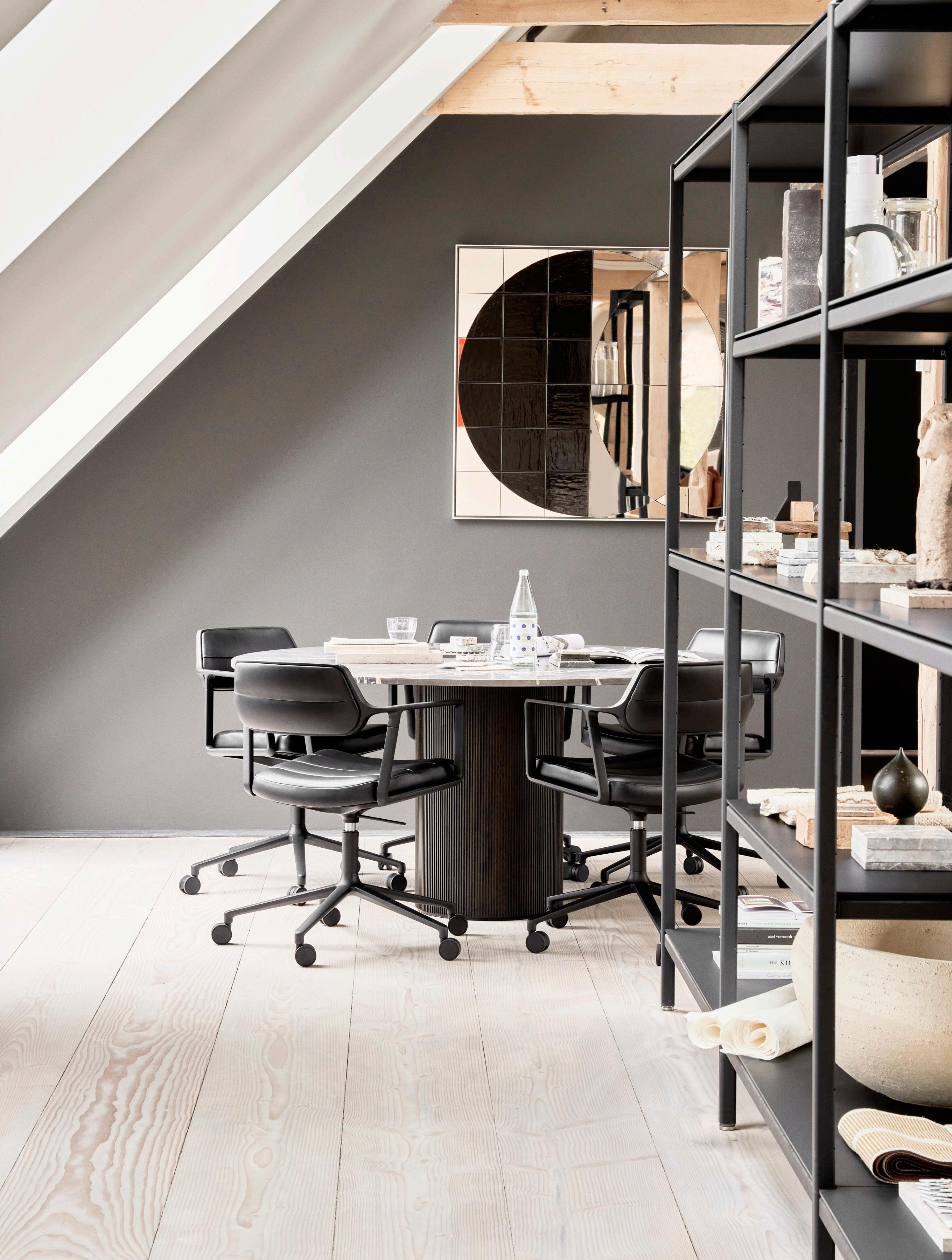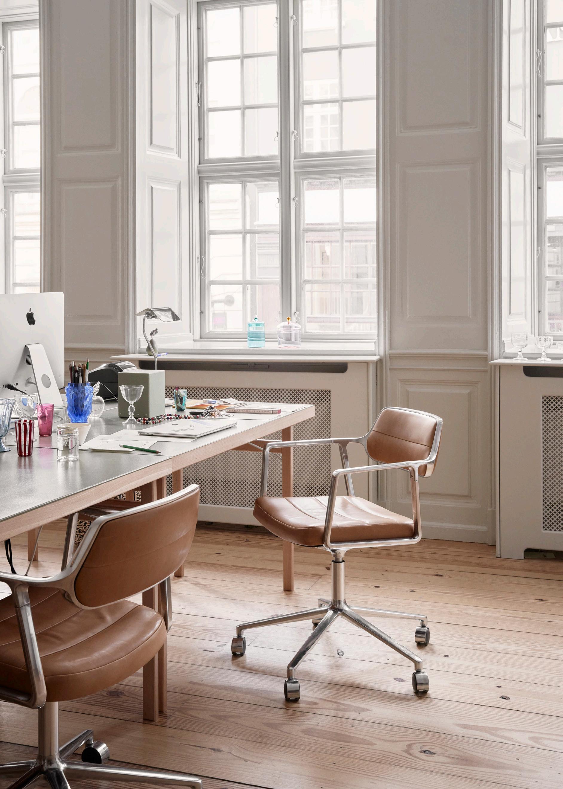 In an industrial district outside Aarhus, Aduro has furnished its headquarters’ meeting rooms with Vipp Swivel+ chairs in custom-made virgin leather.