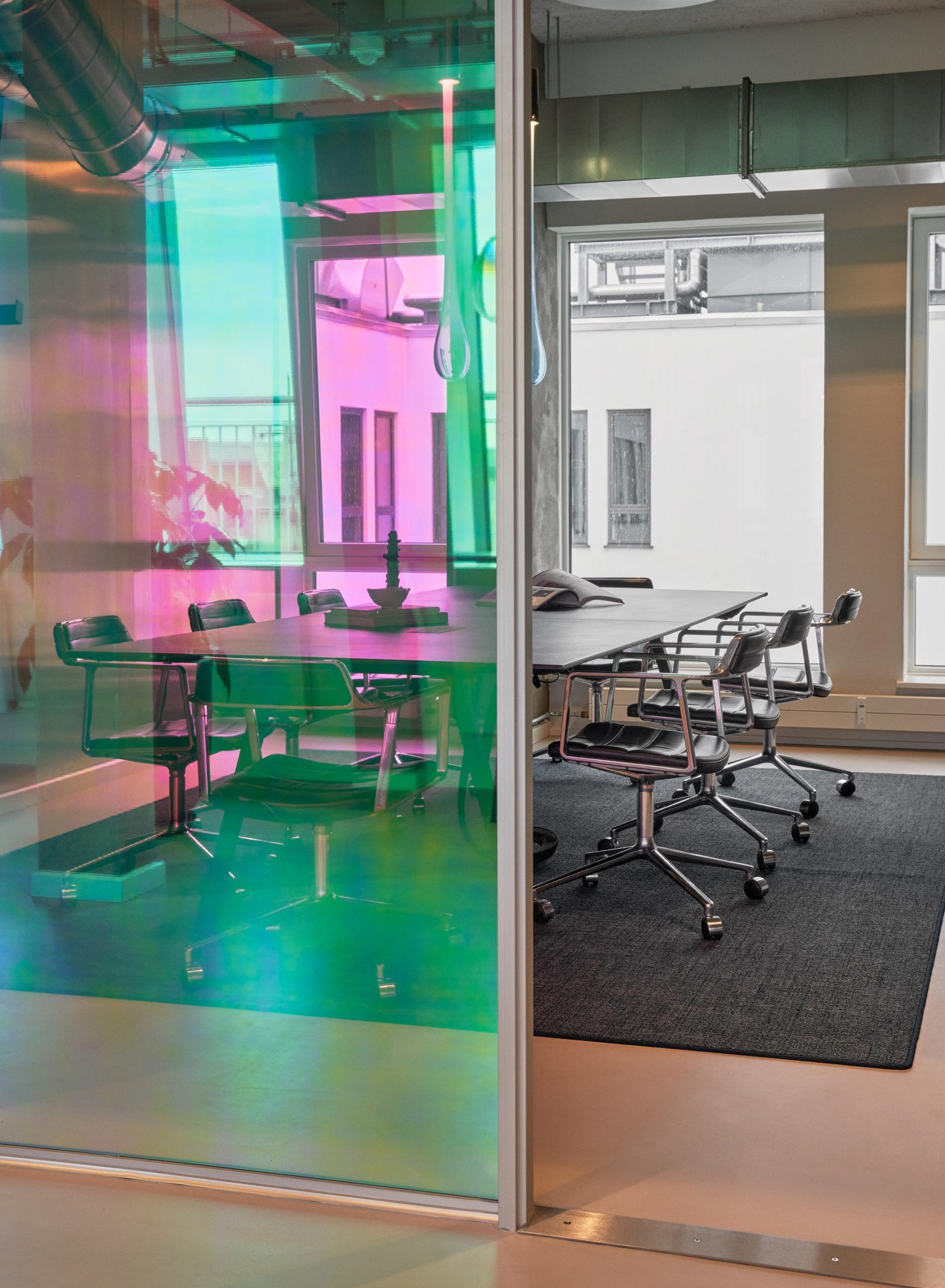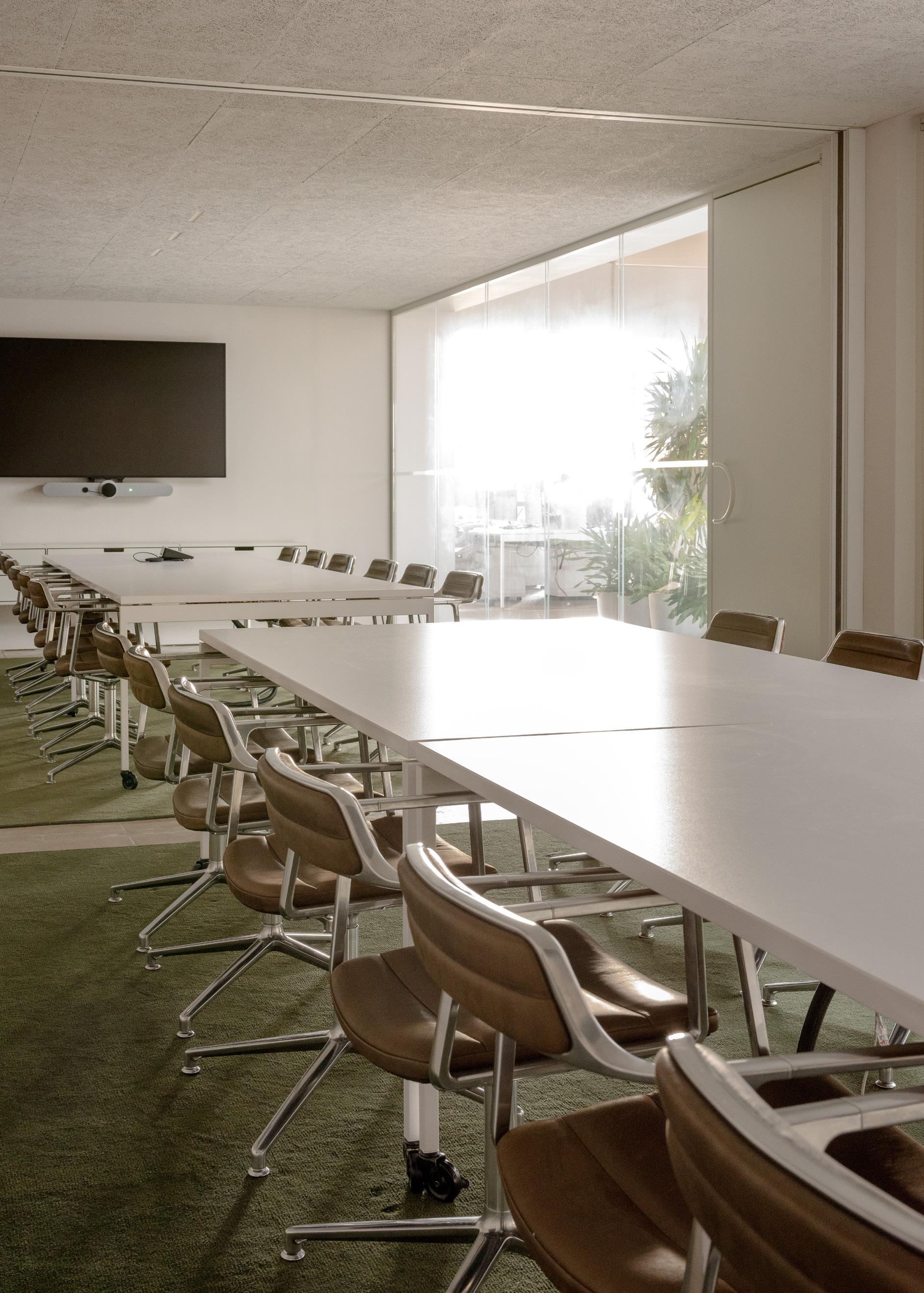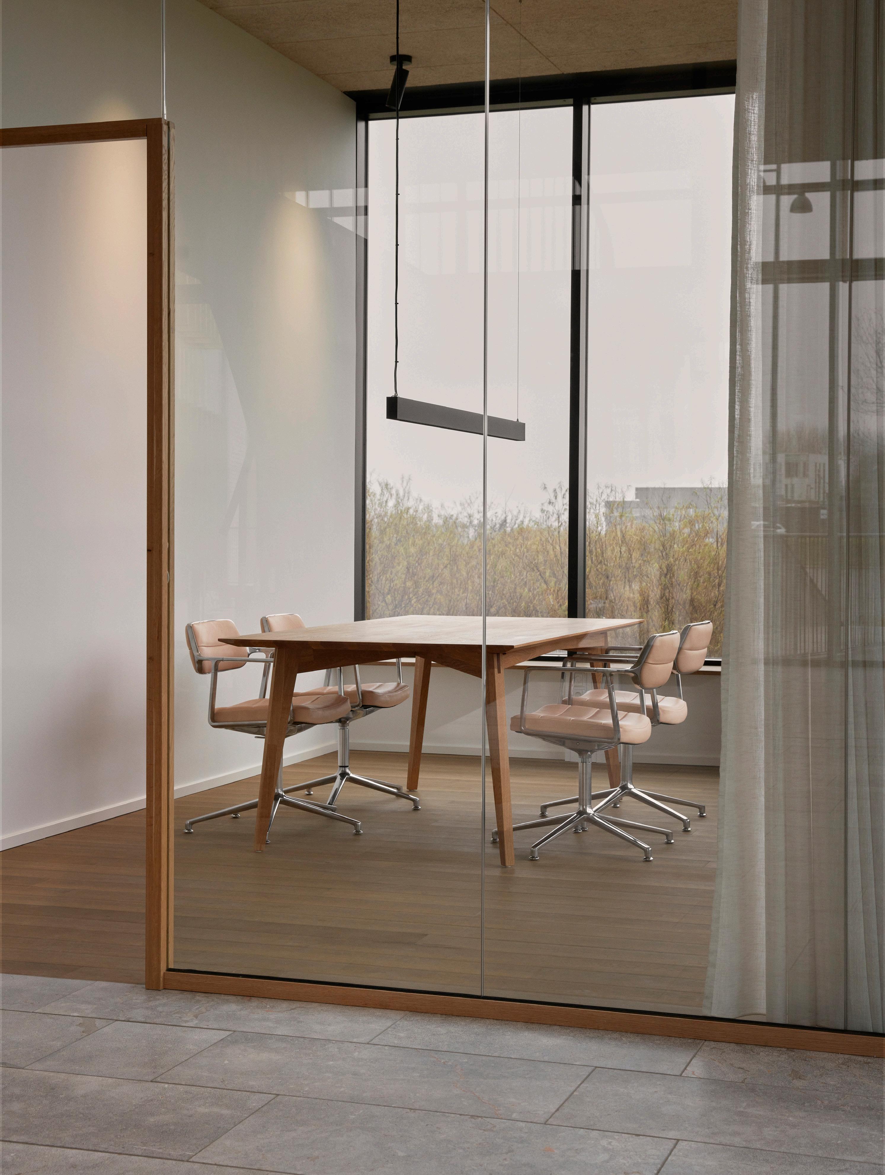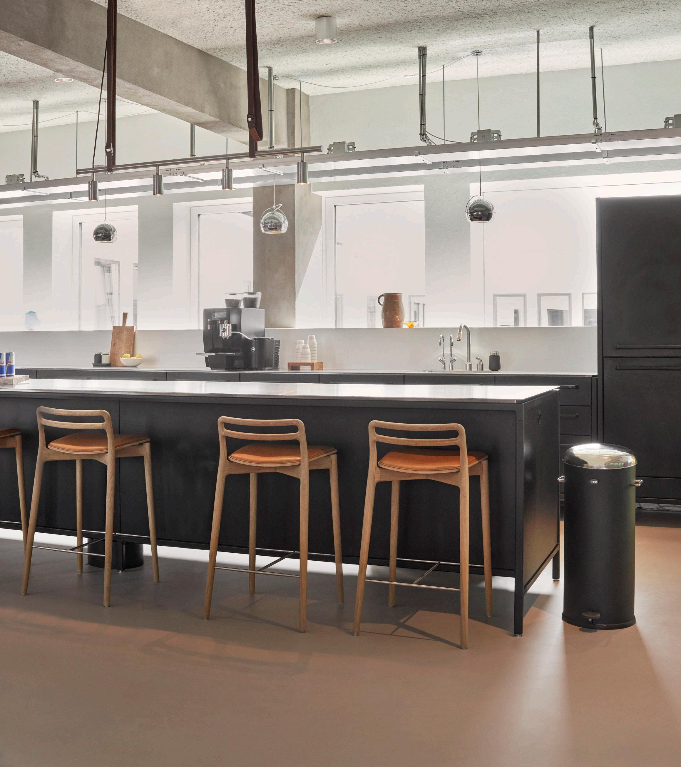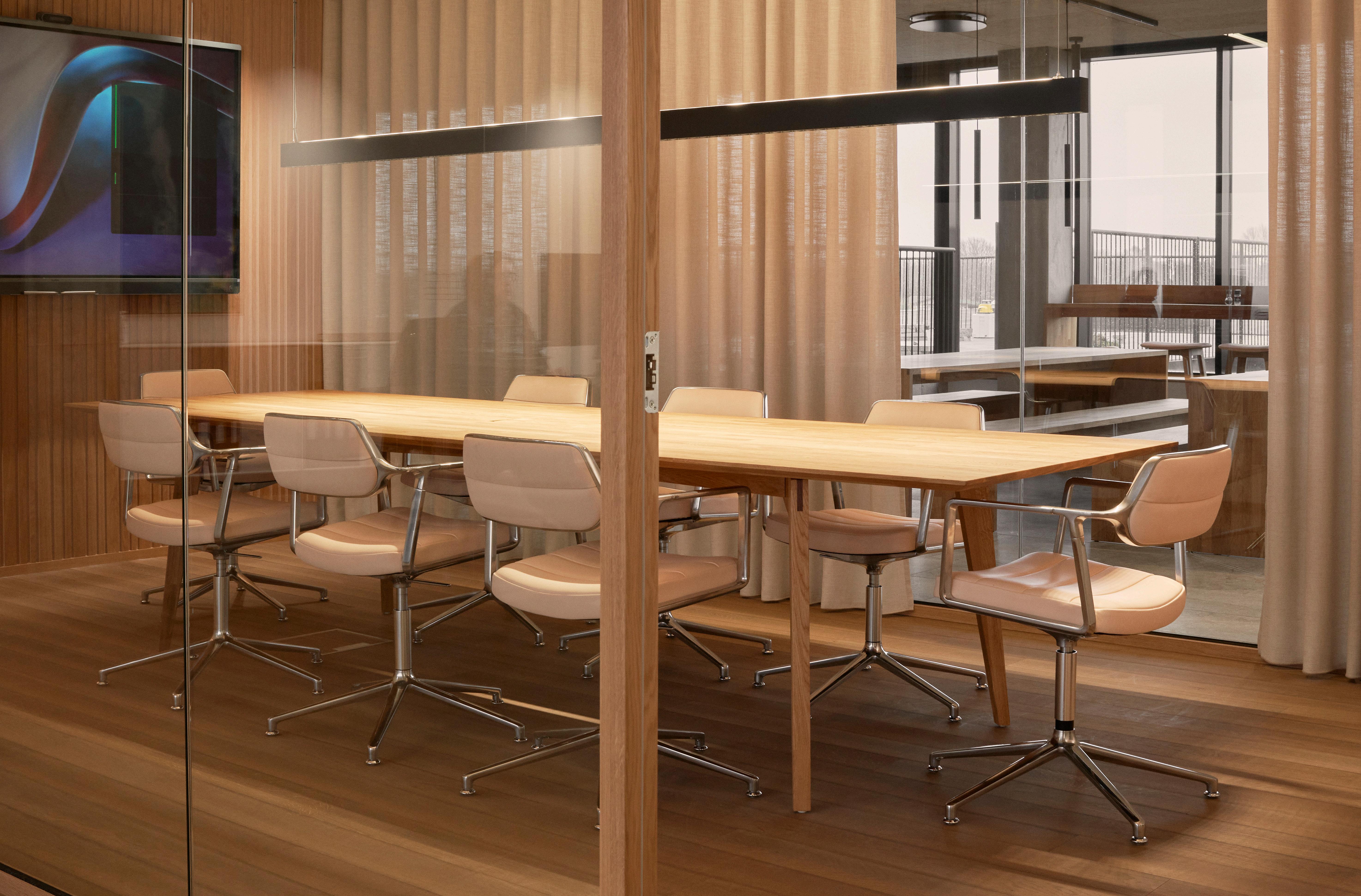 In an industrial district outside Aarhus, Aduro has furnished its headquarters’ meeting rooms with Vipp Swivel+ chairs in custom-made virgin leather.