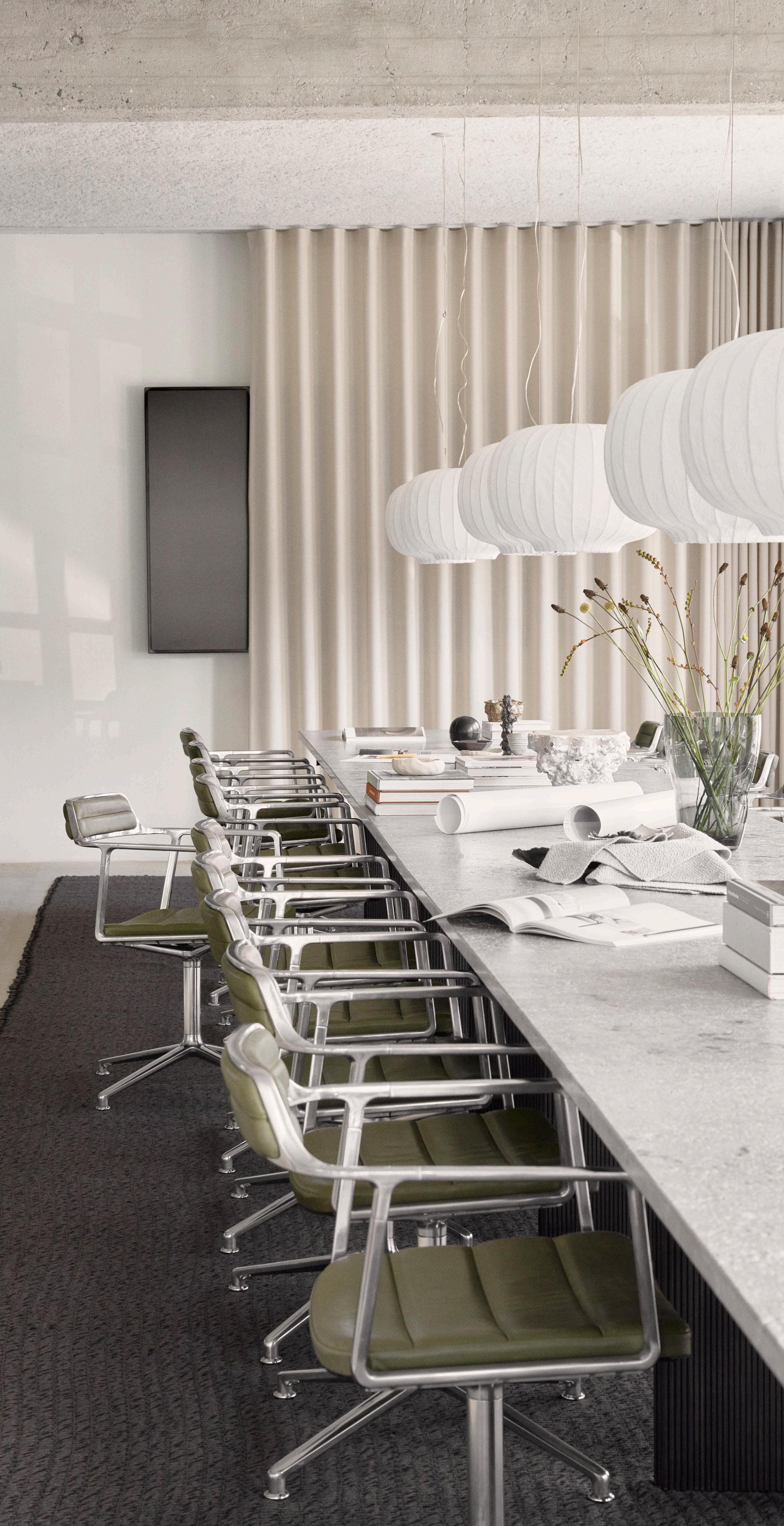 A carefully curated selection of images to inspire the styling of chairs, tables, and large conference rooms. These setups showcase how Vipp furniture can transform spaces.