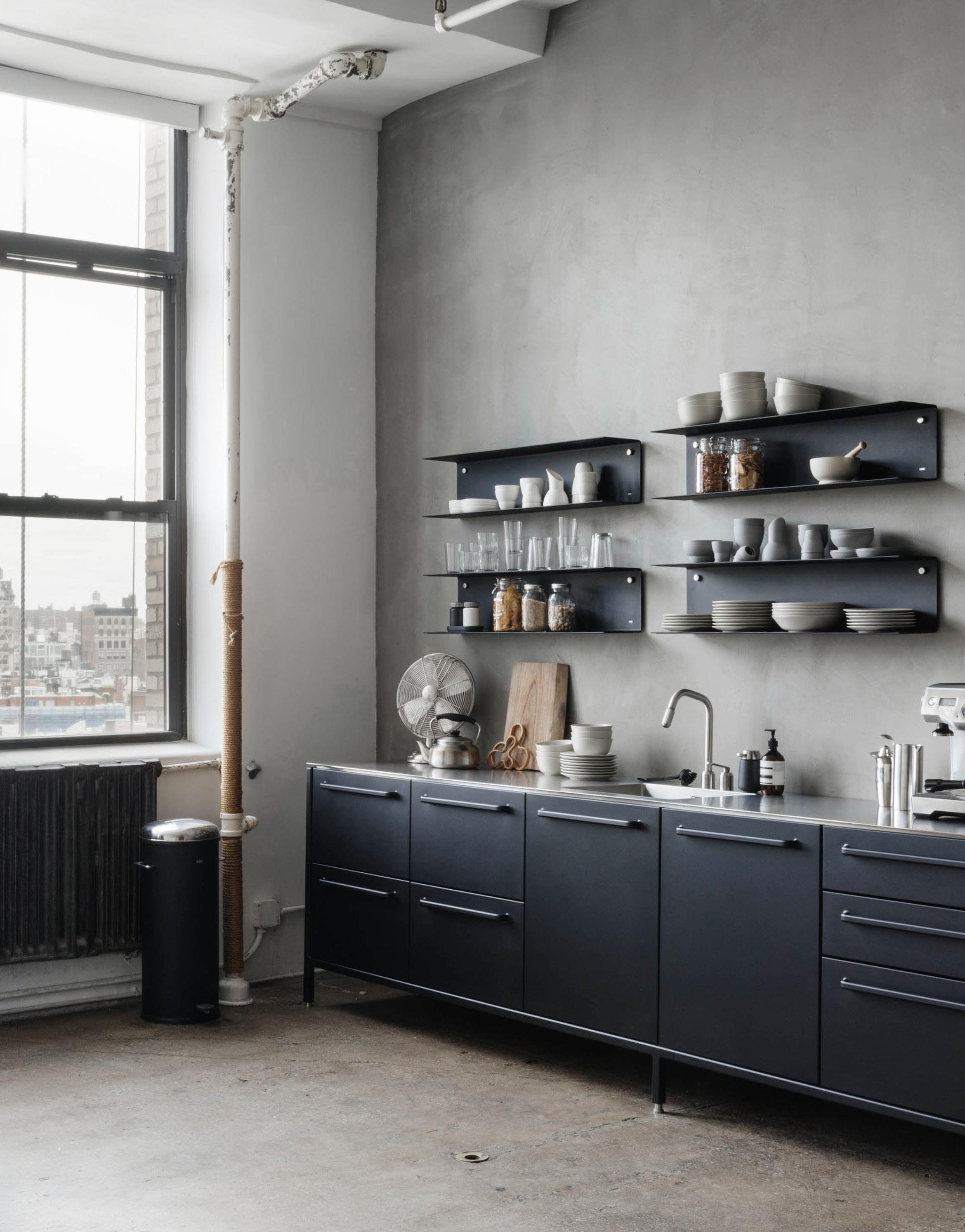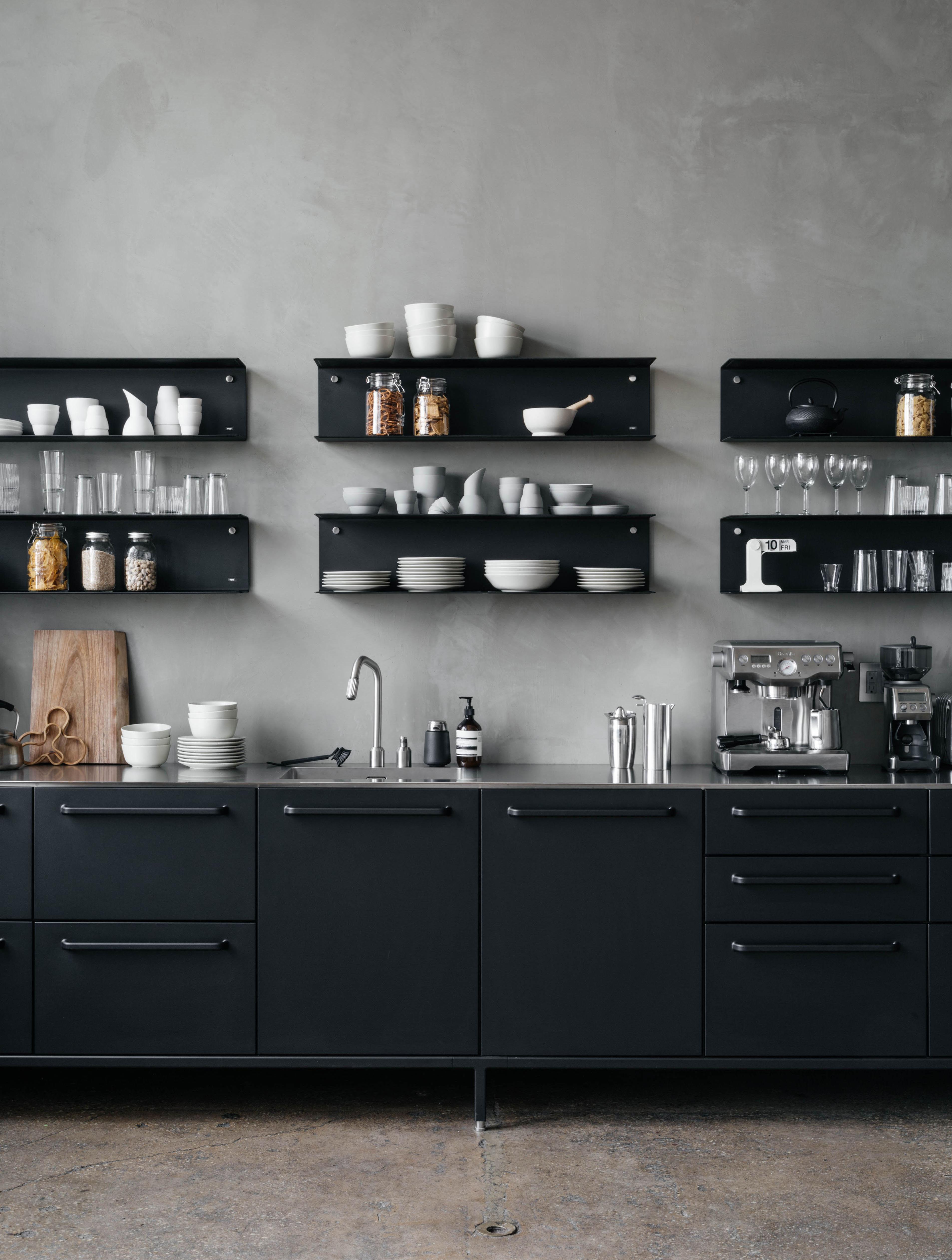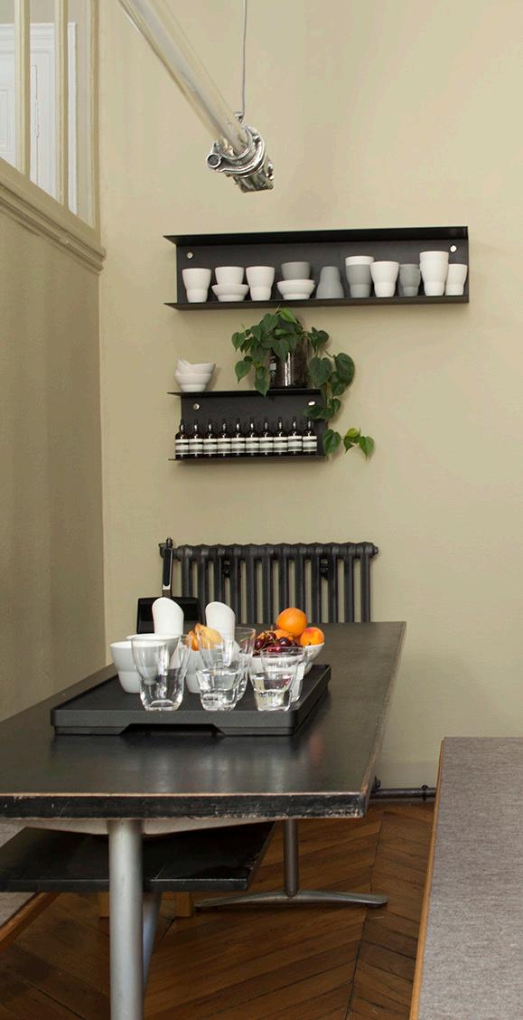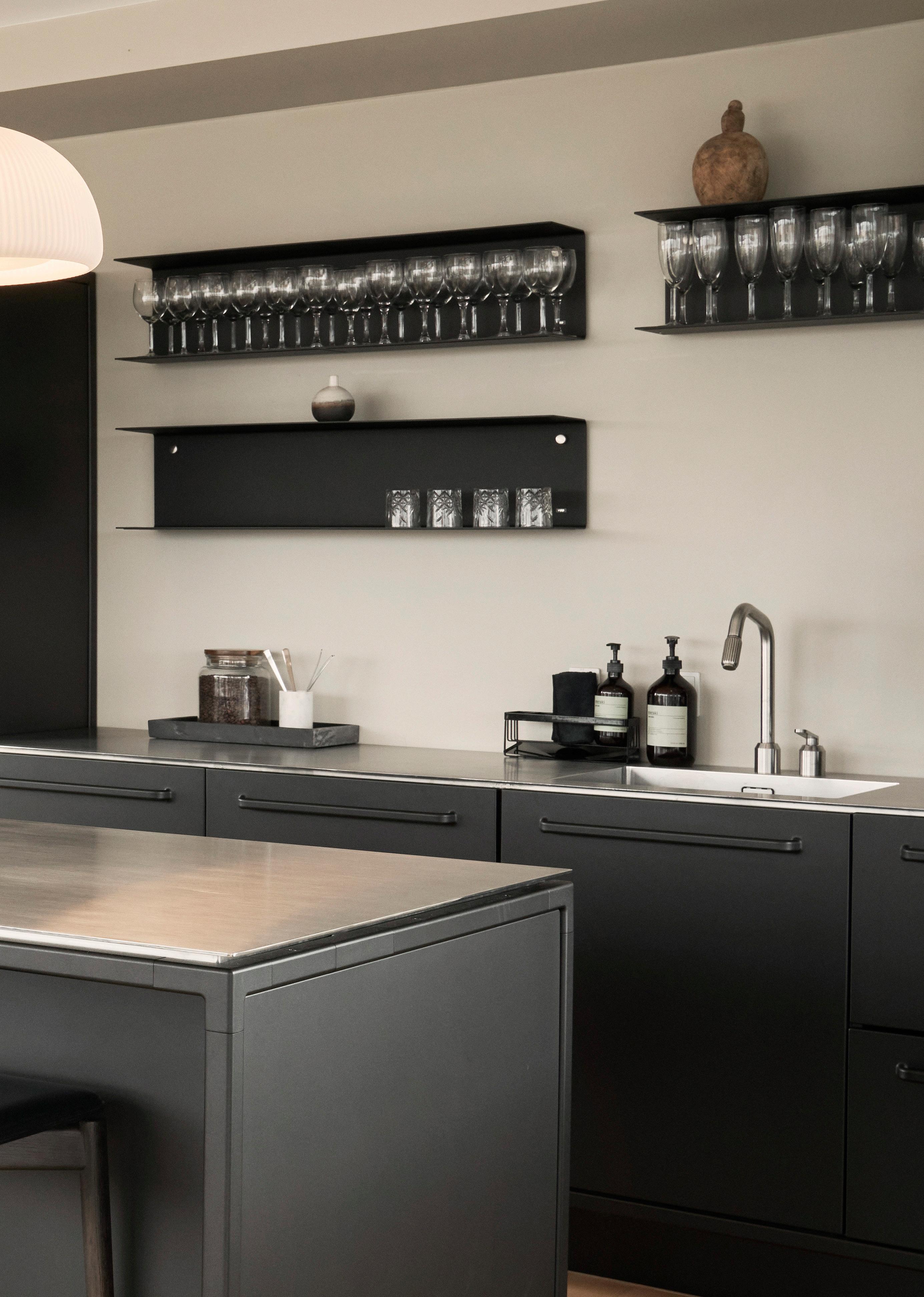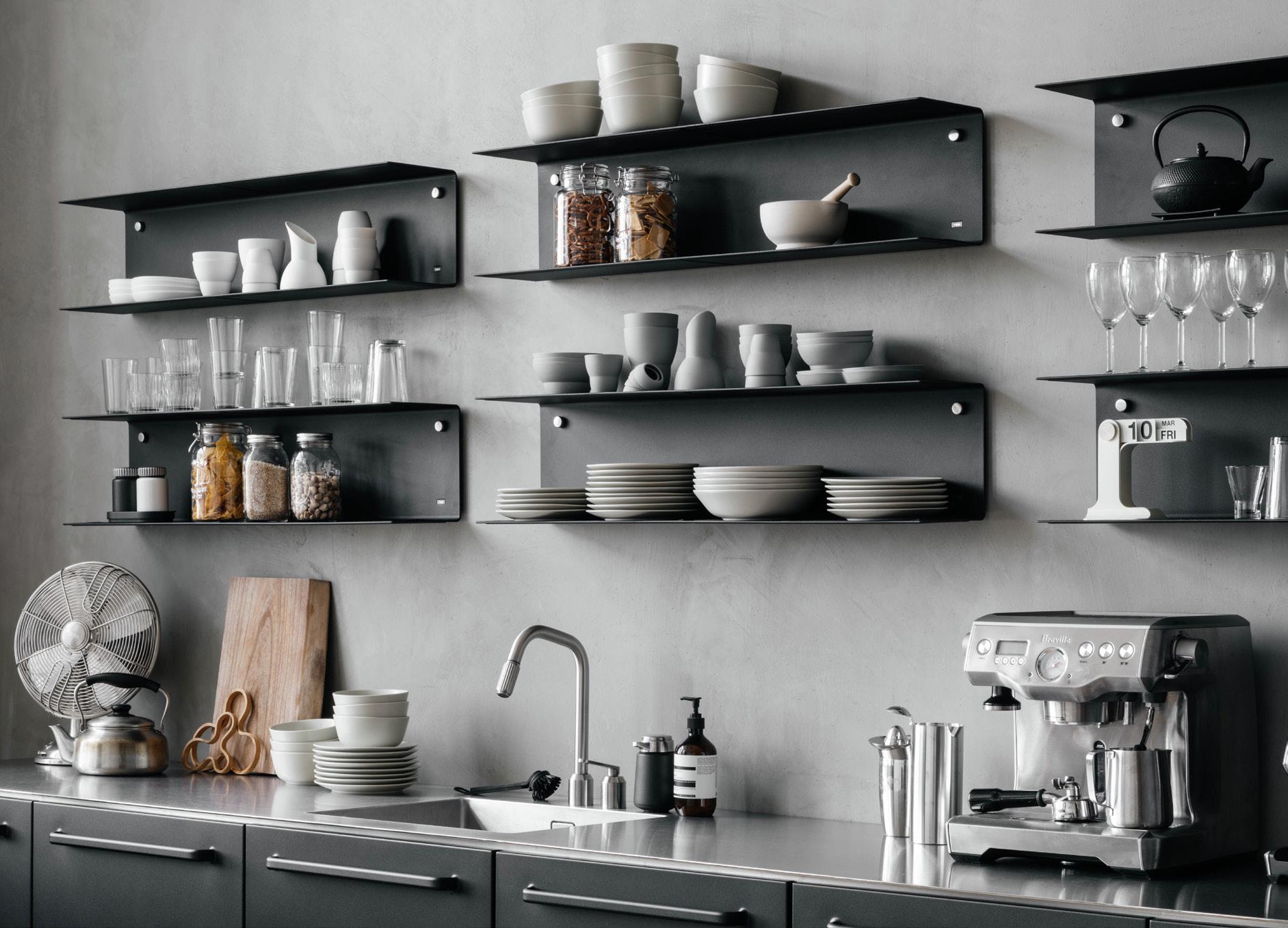 These Vipp shelves are designed with two surfaces, making them a functional storage options