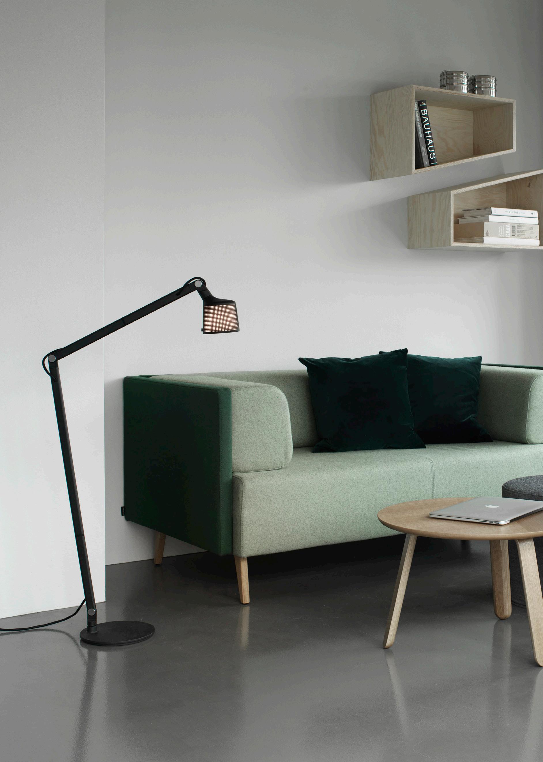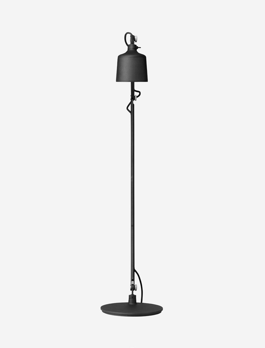 The Vipp floor reading lamp is a reading light for the living room. A perforated lamp shade in powder-coated steel combined with matte glass provides a soft diffusion of light.