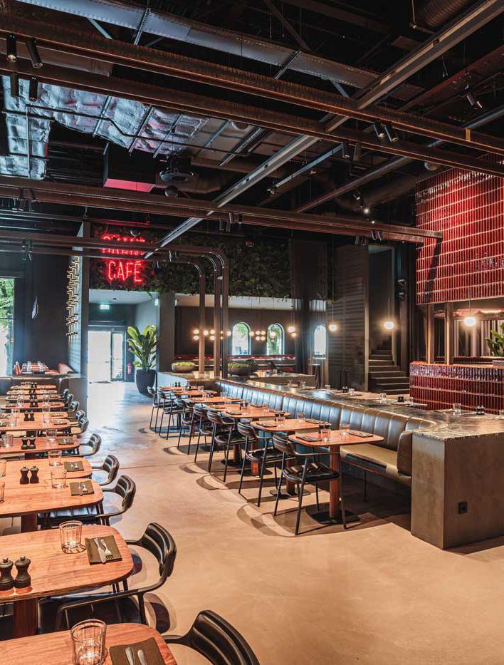 The space emanates a contemporary, urban charm. Hosting 3 restaurants and a bar, the space offers a dynamic atmosphere.