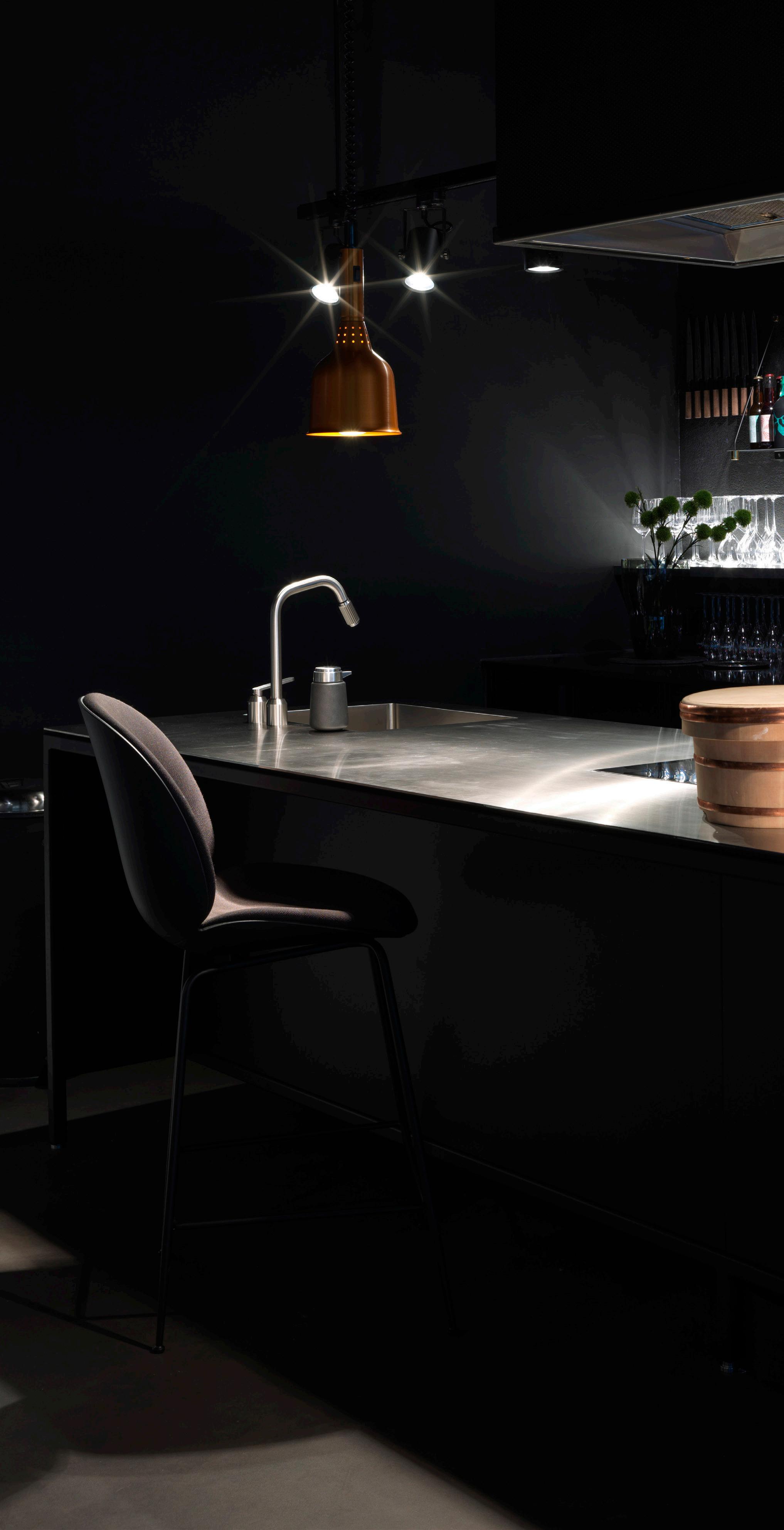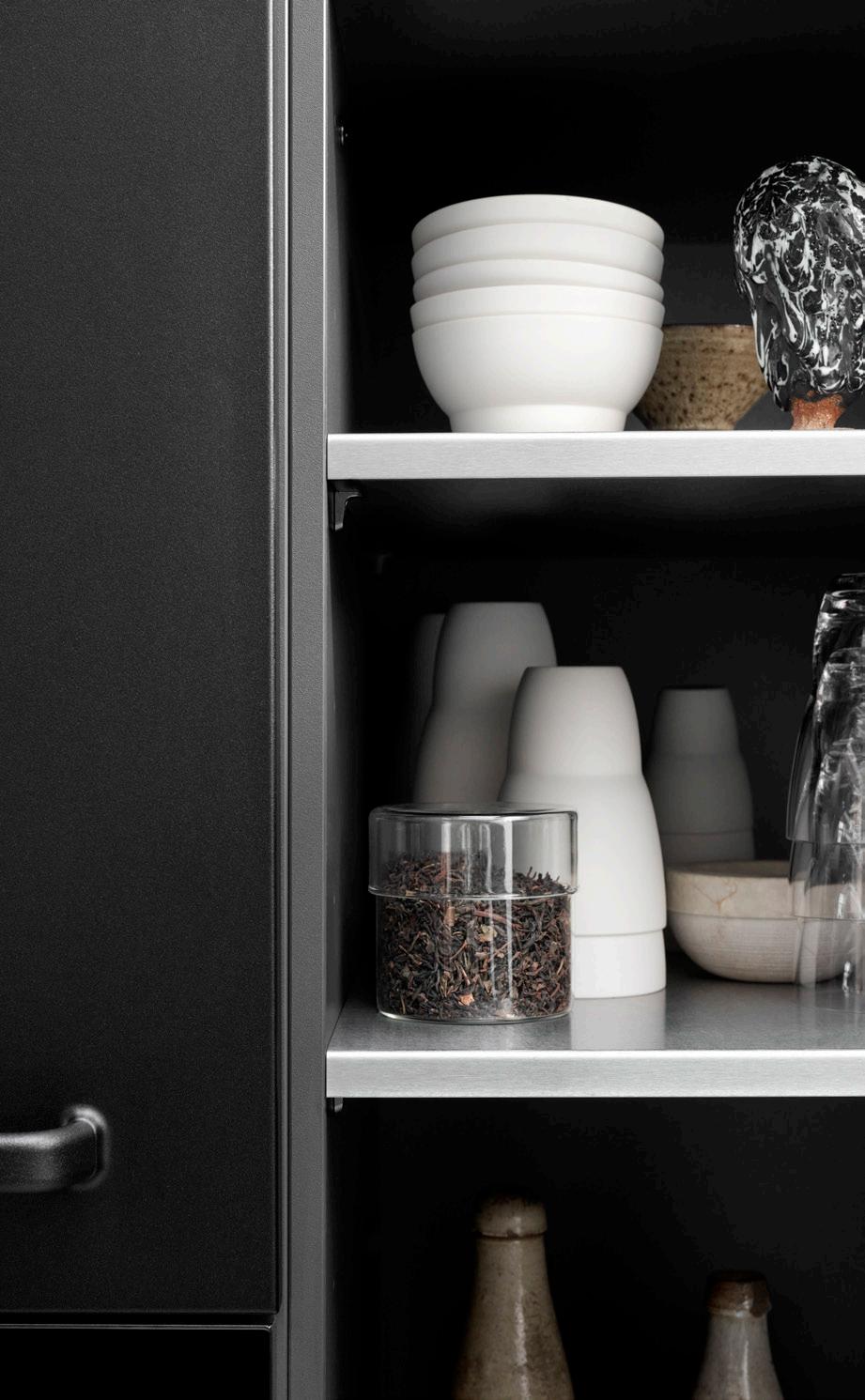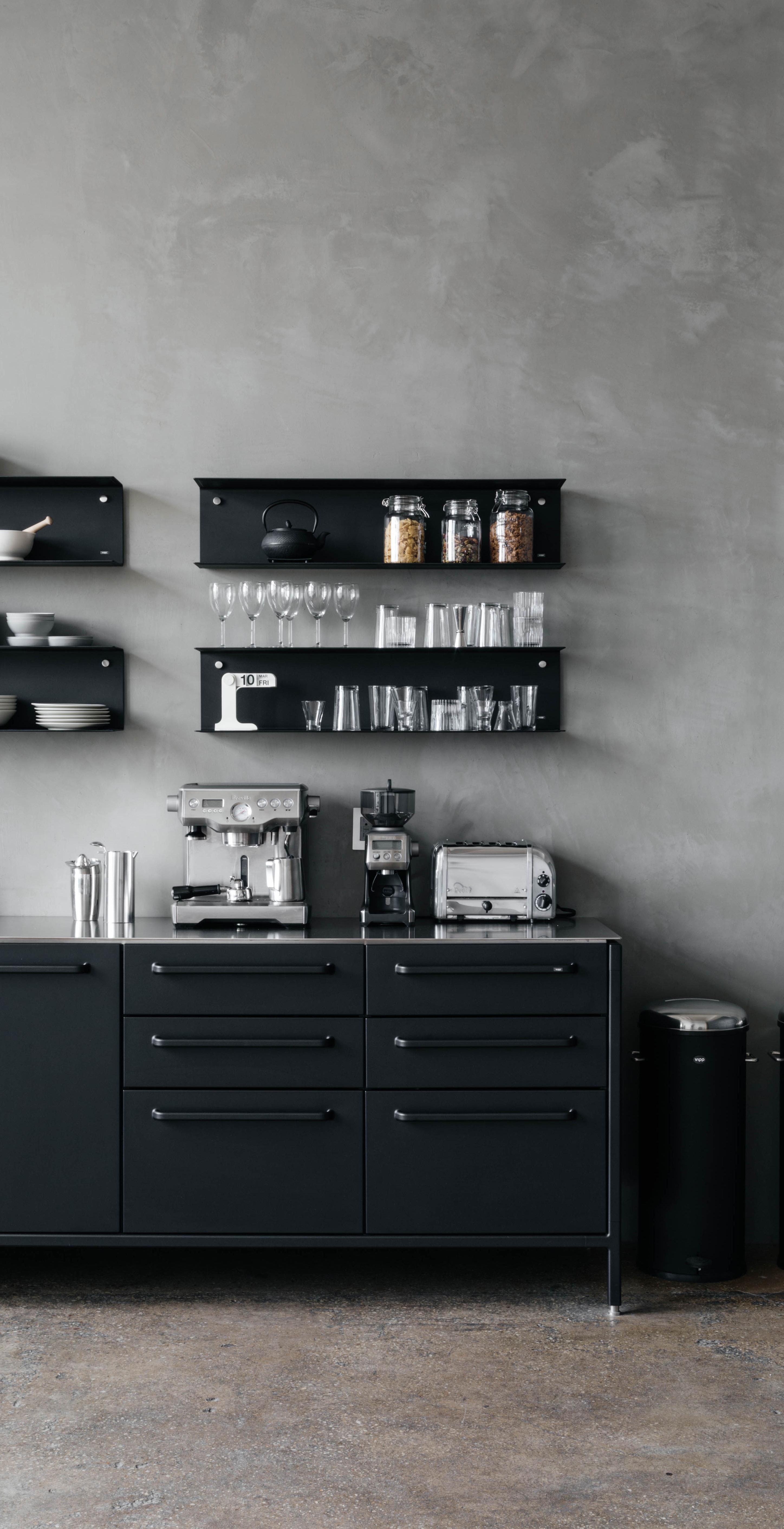 Envisioned to be used every day for a lifetime, the kitchen is stripped of fading trends and filled with carefully considered and highly engineered details. The wall module is a classic solution for every kitchen configuration. It can be placed freely or against the wall and be composed of 1-10 units. V1