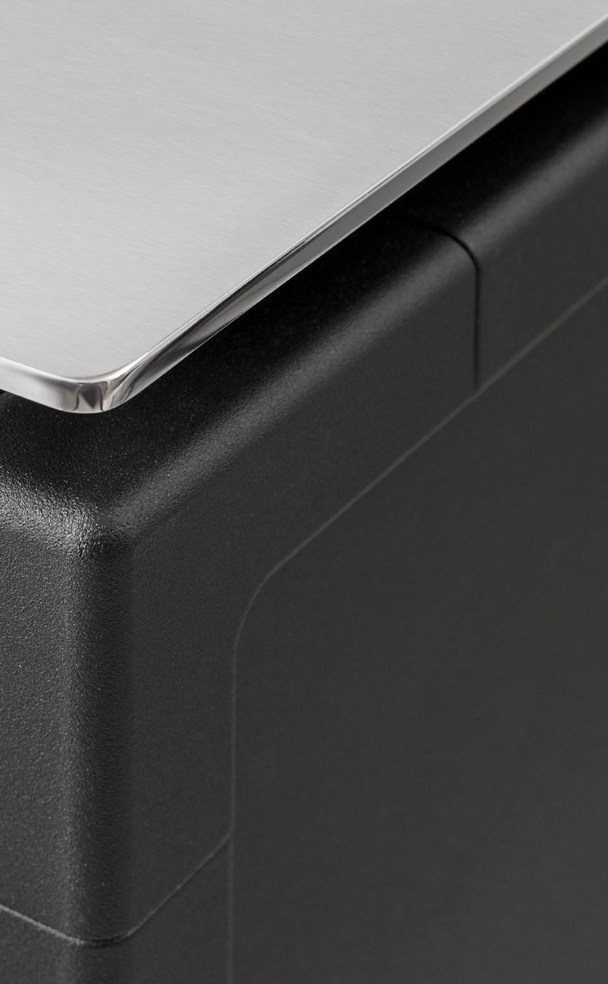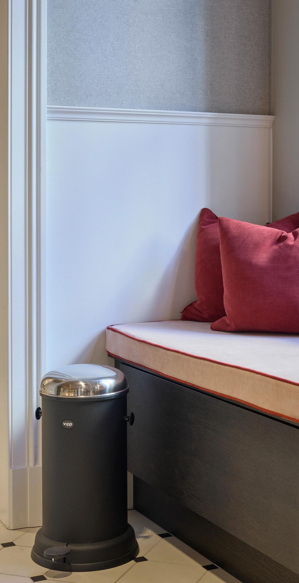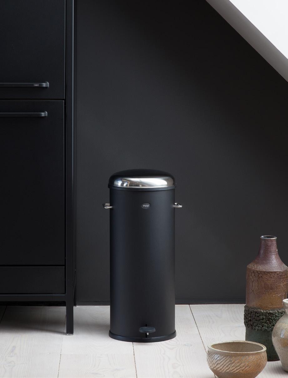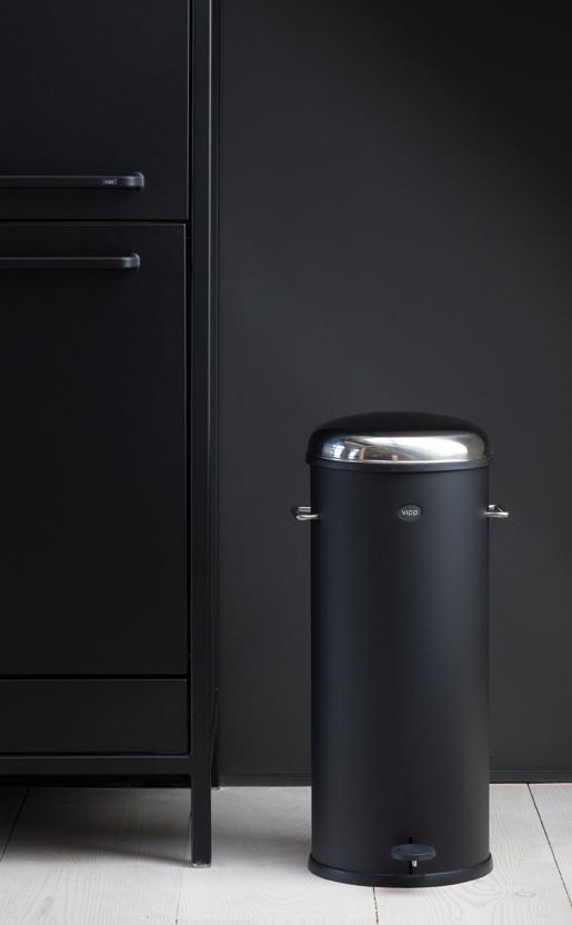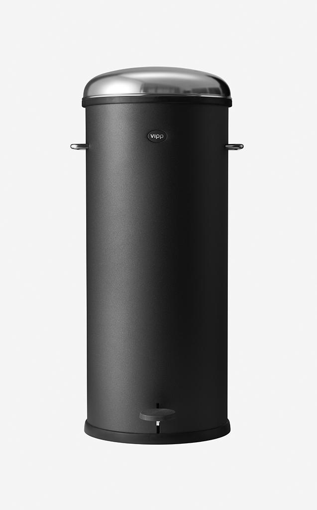 The Vipp17 pedal bin is the largest of the Vipp bins, ideal for use in kitchens. This pedal bin is equipped with a removable inner bin, a lid that ensures air-tight closure, and a damper mechanism that provides smooth closing of the lid.
