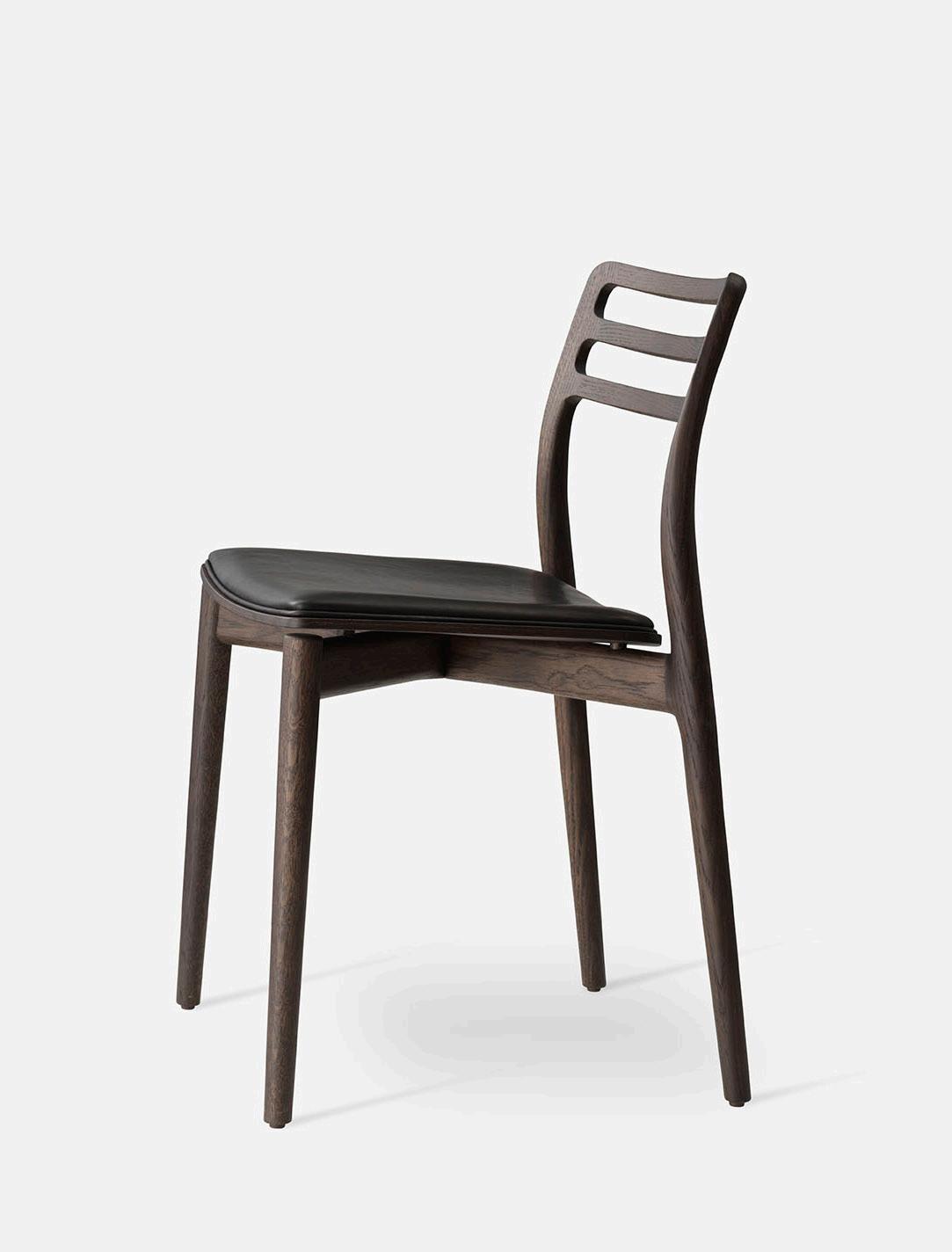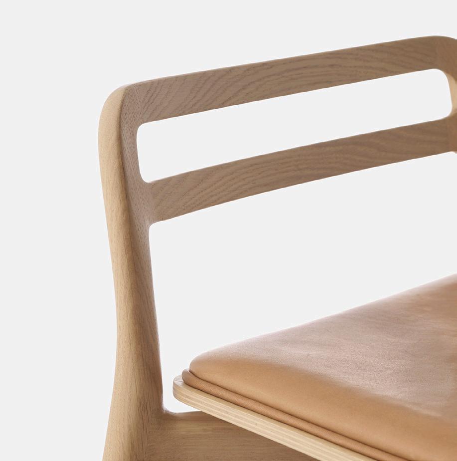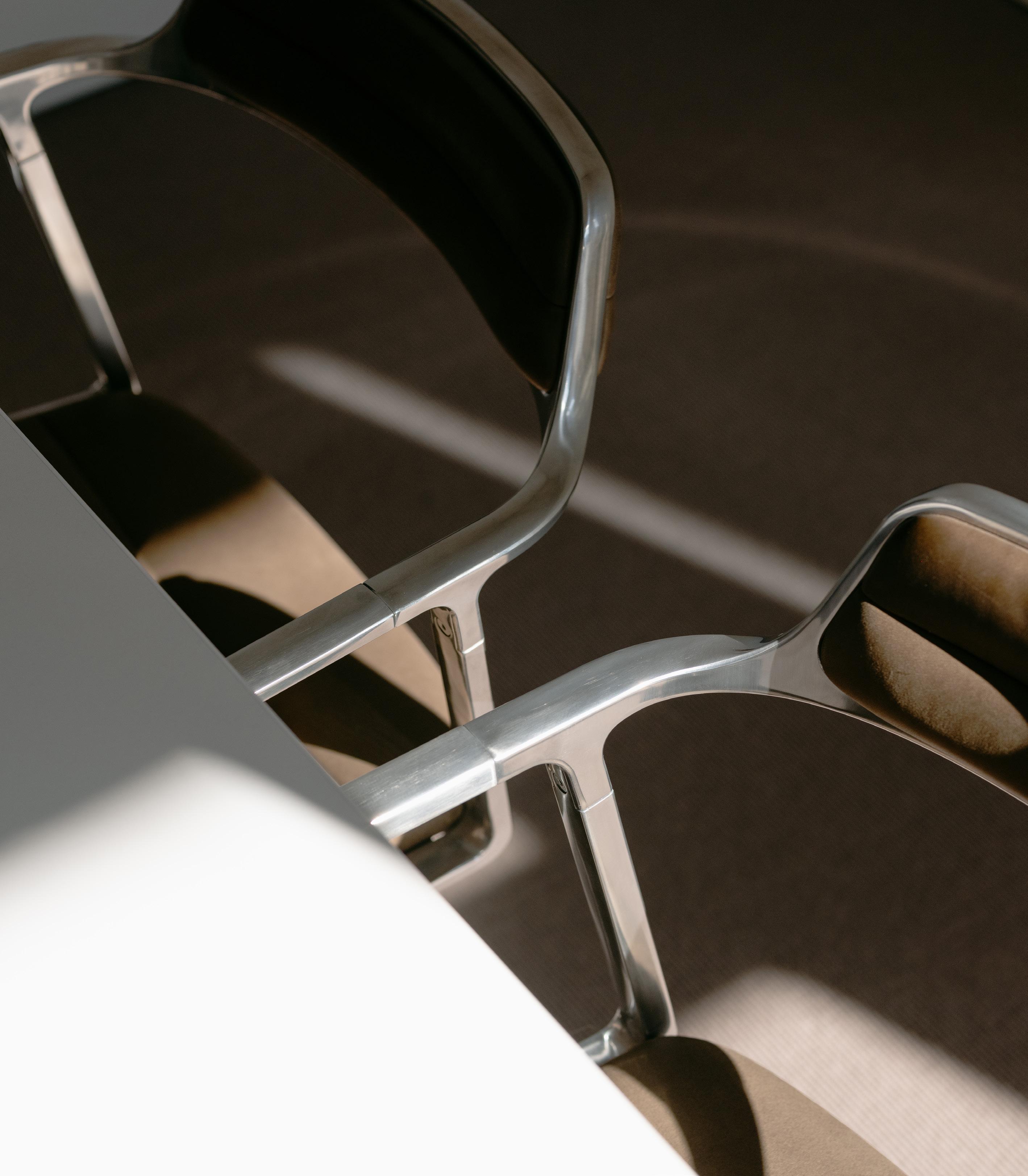 The slender armrests continue straight into the discreet, padded backrest, giving the armchair an