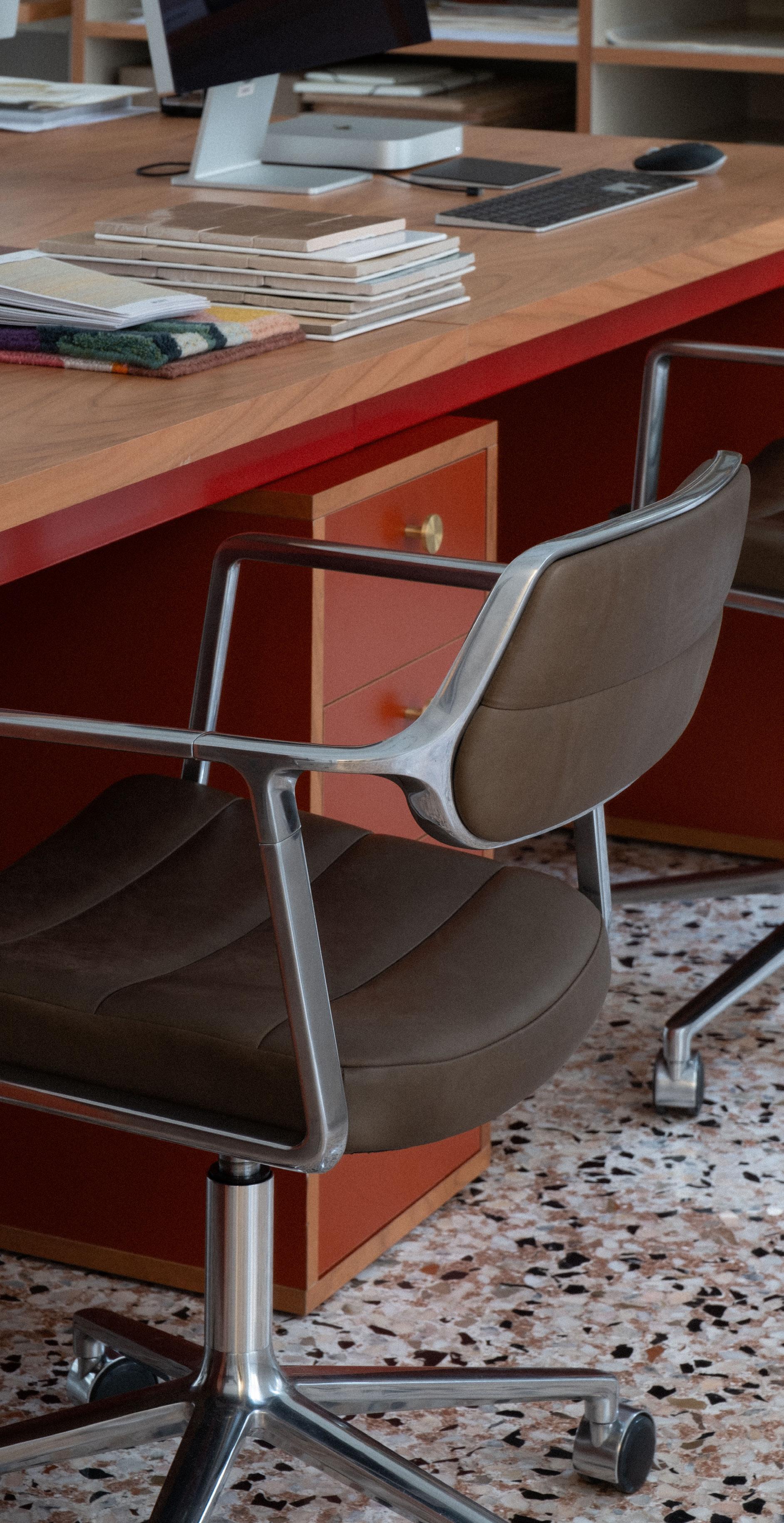 The Vipp Swivel chair finds its place at Omni Kaiser Patisserie - a meeting point of craft and comfort, brought to life by ACOS. A thoughtful presence in a refined Polish workspace.