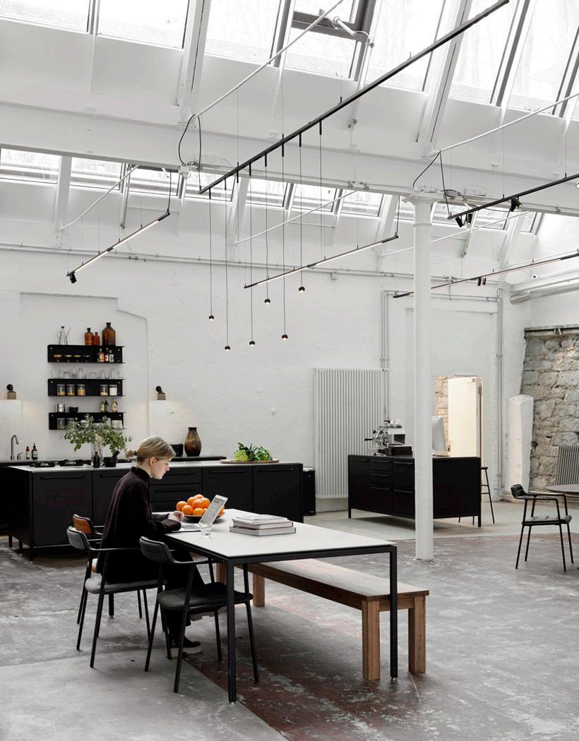 A 220 m2 large open plan room was suddenly vacant in an old factory area of Zürich, offering an industrial vibe as the stripped bricks and concrete floor were preserved; thoroughly fitting for the kind of innovative firms that the company specializes in.