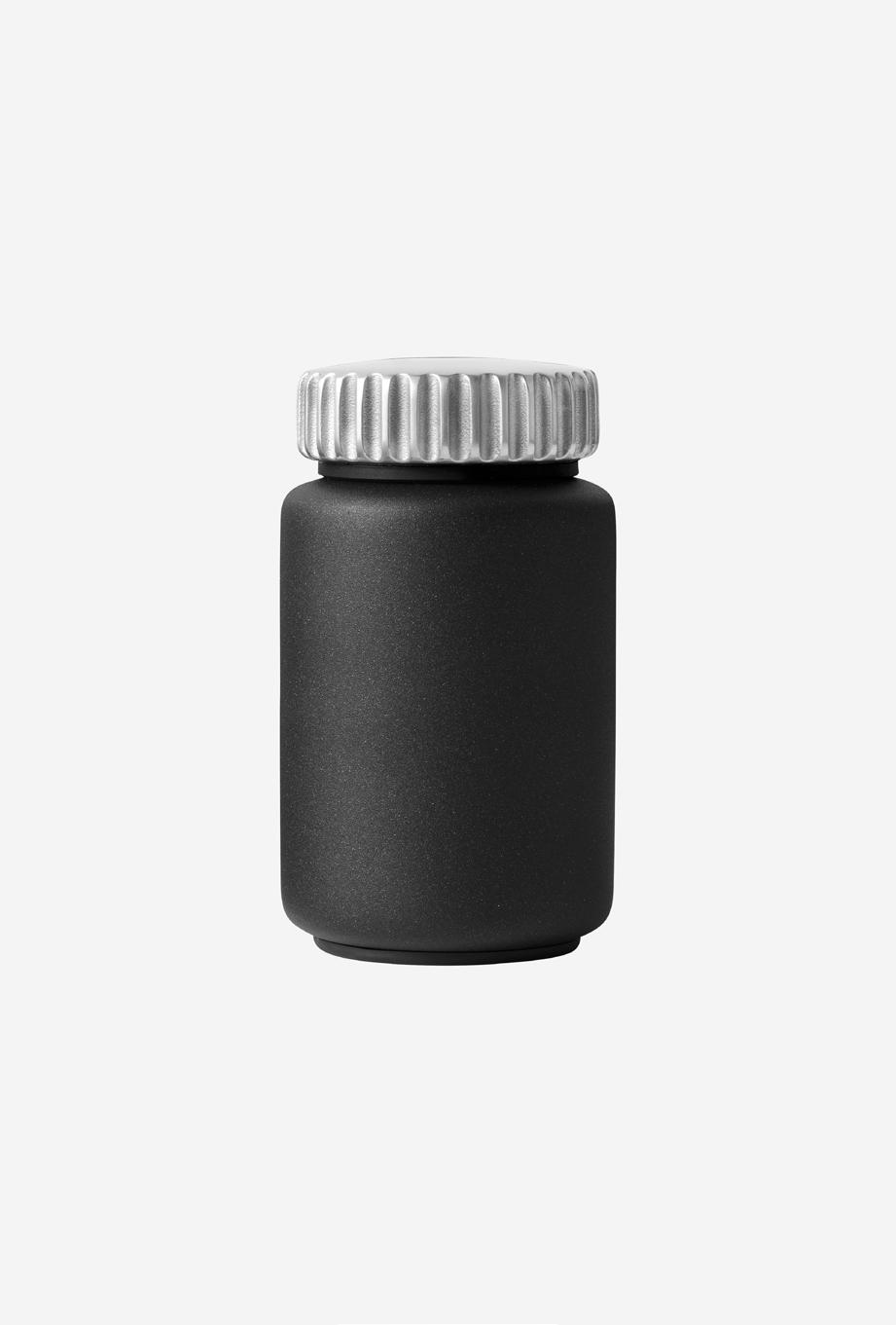 The Vipp salt and pepper mills are tabletop necessities for the kitchen or dining room. The set of mills are constructed with a swivel top and a durable ceramic grinder with a refined grinding sound. The shared base holds a removable inner section.