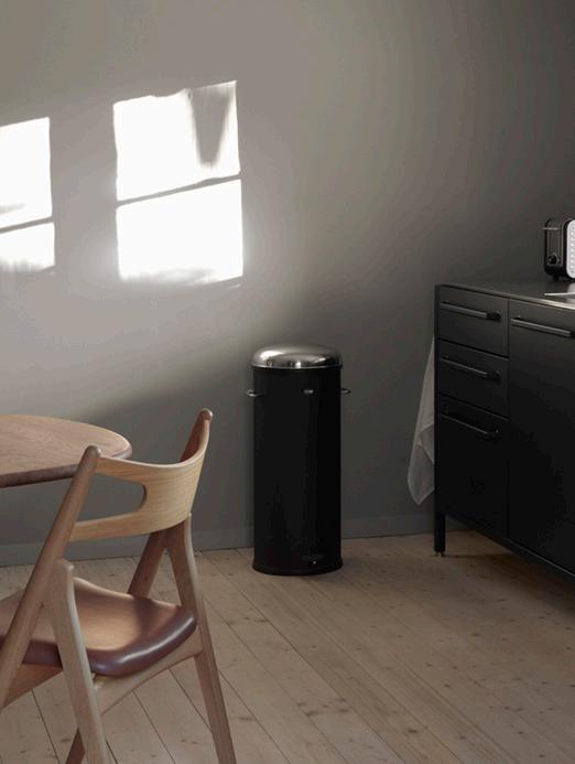The Pedal bin is a 30 liter trash can. The bin is made with a layer of stainless steel and equipped with a damper mechanism for smooth closing of the lid.