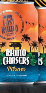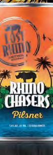 Brewed with locally grown Virginia malt and hops, this American IPA is packed with fresh herbal hop flavor for a taste of Virginia in every drop. RHINO CHASERS PILSNER • 5.6%