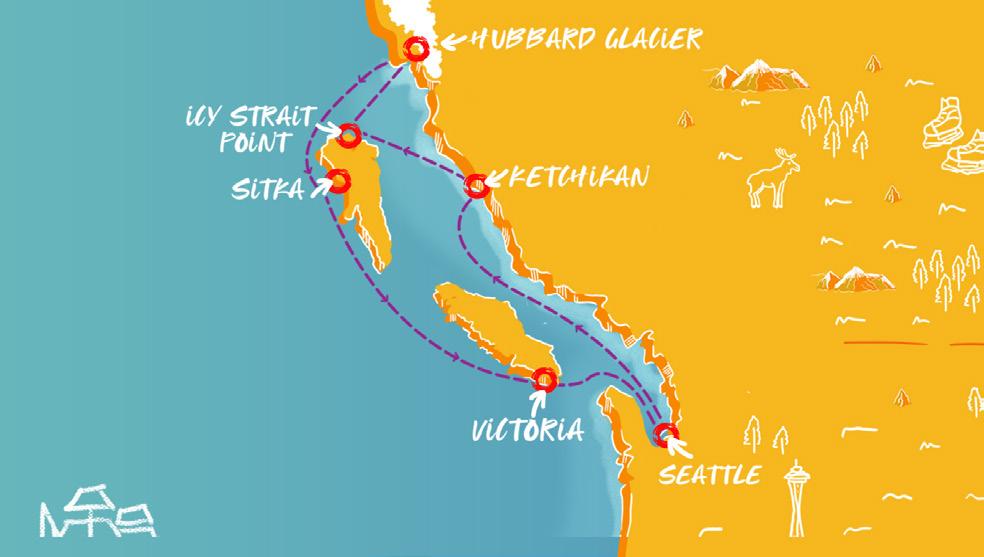 This 12-night adventure departs from Seattle, winding through the serene Inside Passage before reaching Ketchikan and the historic port of Sitka. Marvel at the mighty Hubbard Glacier before exploring Skagway and Haines. Continue on to Juneau and Icy Strait Point. After two rejuvenating days at sea, you’ll call on picturesque Victoria, British Columbia, before returning to Seattle.